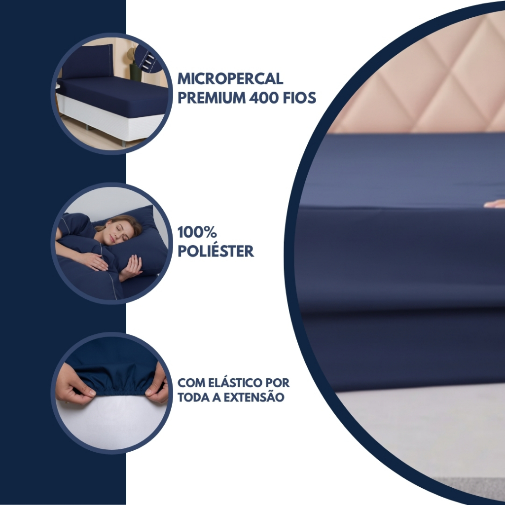 Jogo de Lençol 400 Fios Casal Queen King 03 Peças Solteiro 2 Peças Micropercal Ponto Palito Extra Macio