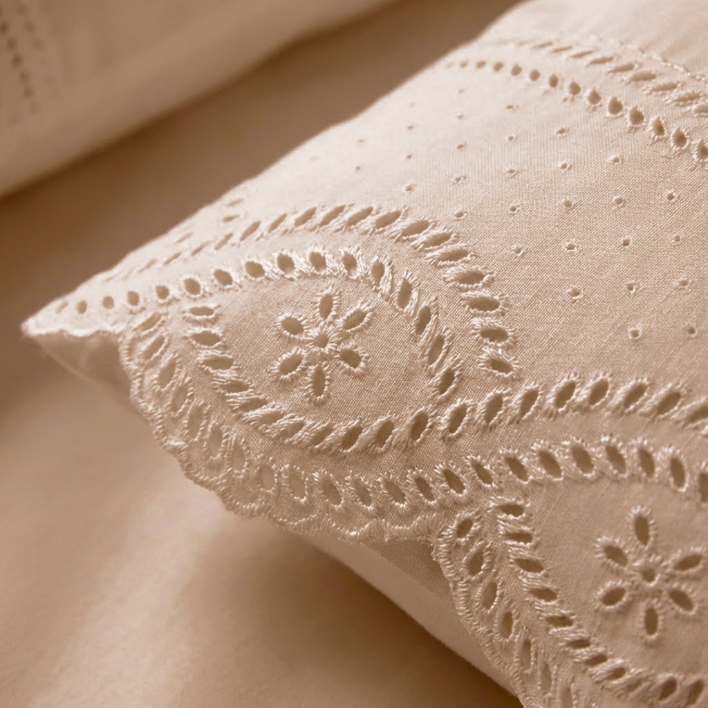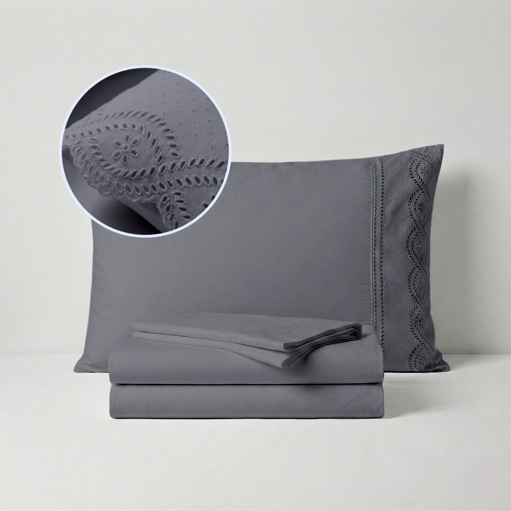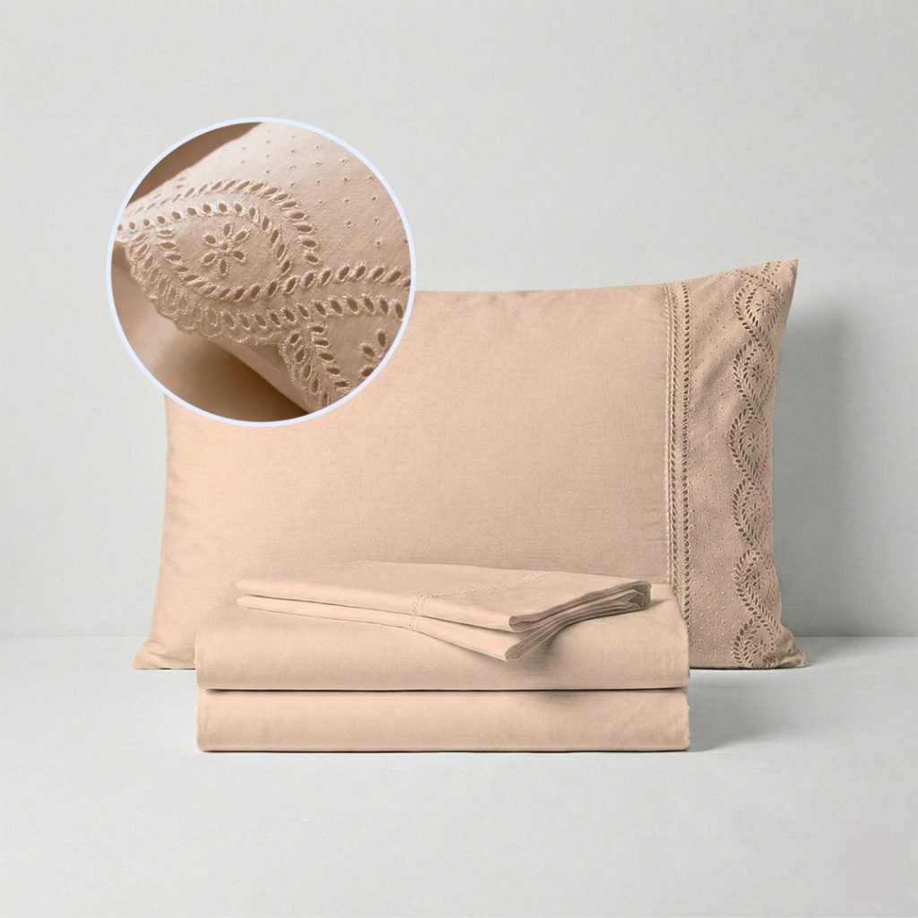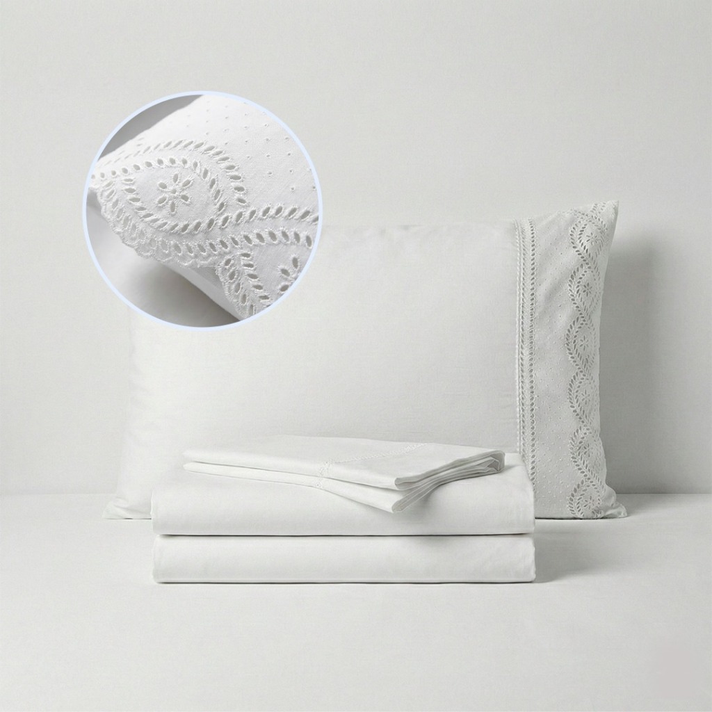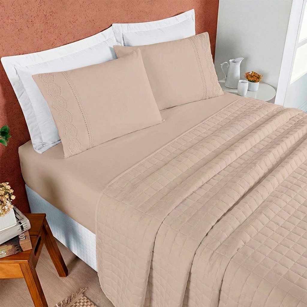 Jogo de Lençol 400 Fios Com Bordado Inglês Casal, Queen King 03 Peças Micropercal