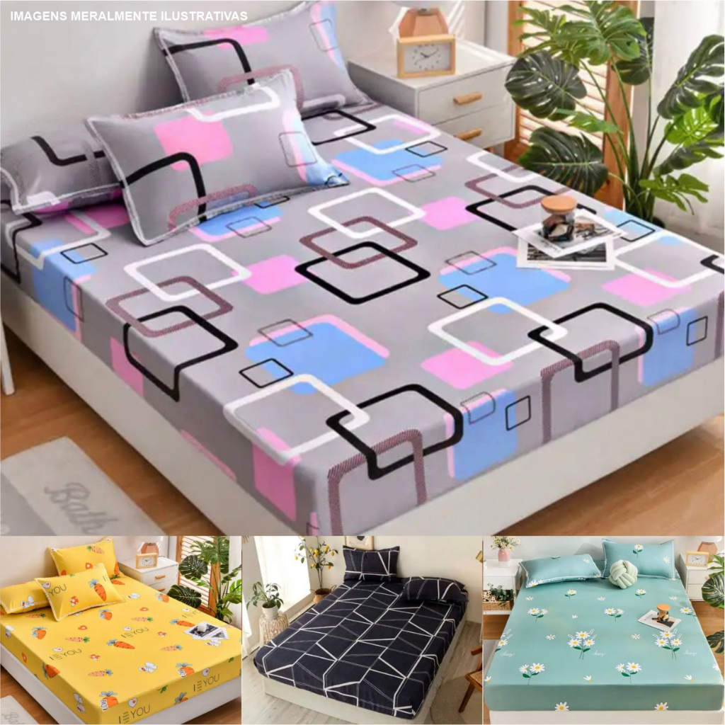 Jogo de Lençol 400 Fios Para Cama Queen Size Estampado