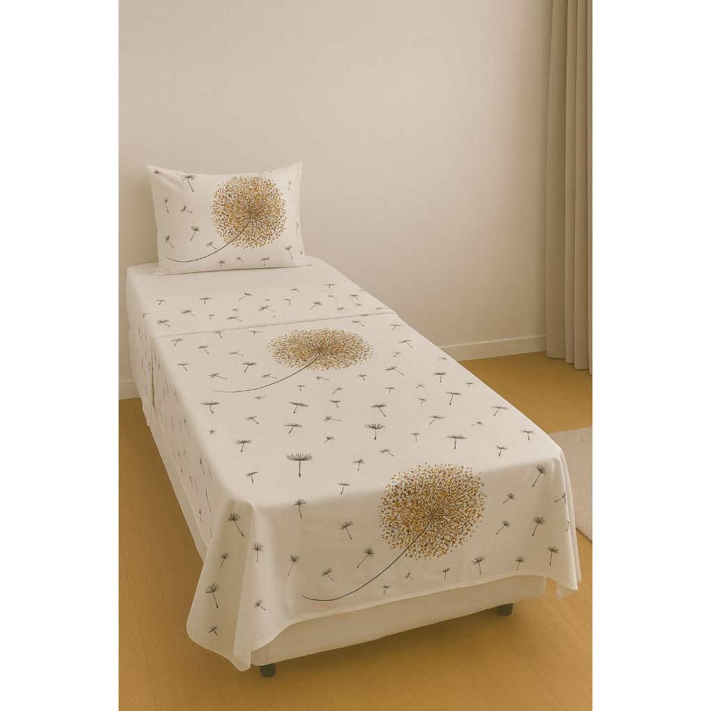Jogo de Lençol Cama Solteiro Estampado / Liso 3pç C/Elástico Micropercal 500 Fios de Luxo Toque Macio de Algodão