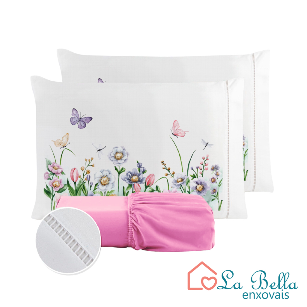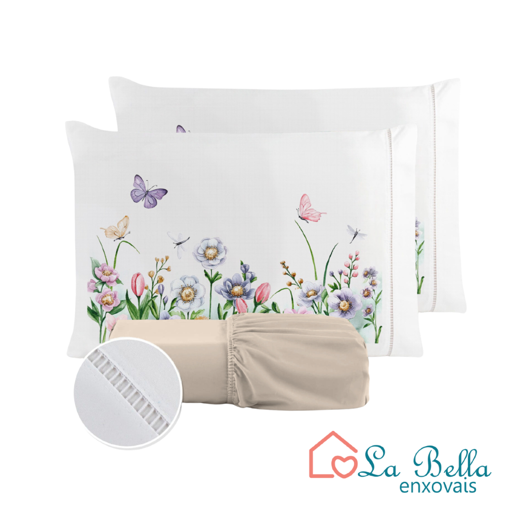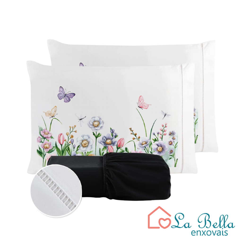 Jogo de Lençol Fronha Borboleta Estampada Micropercal 400 Fios Ponto Palito - ÚLTIMO LANÇAMENTO
