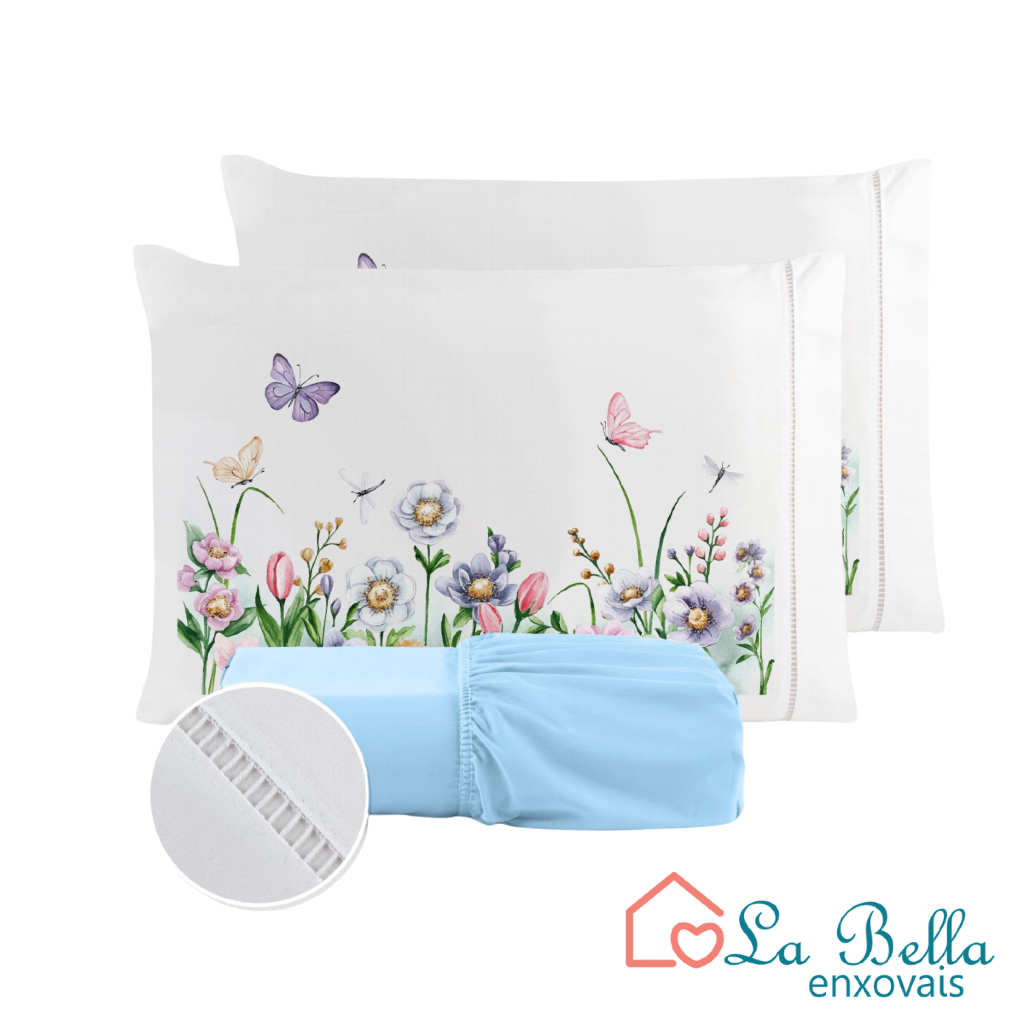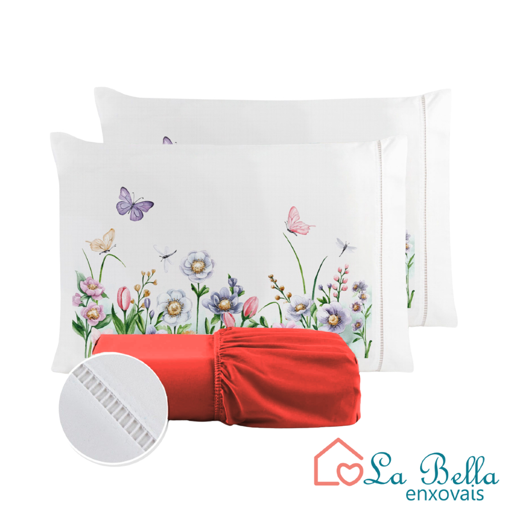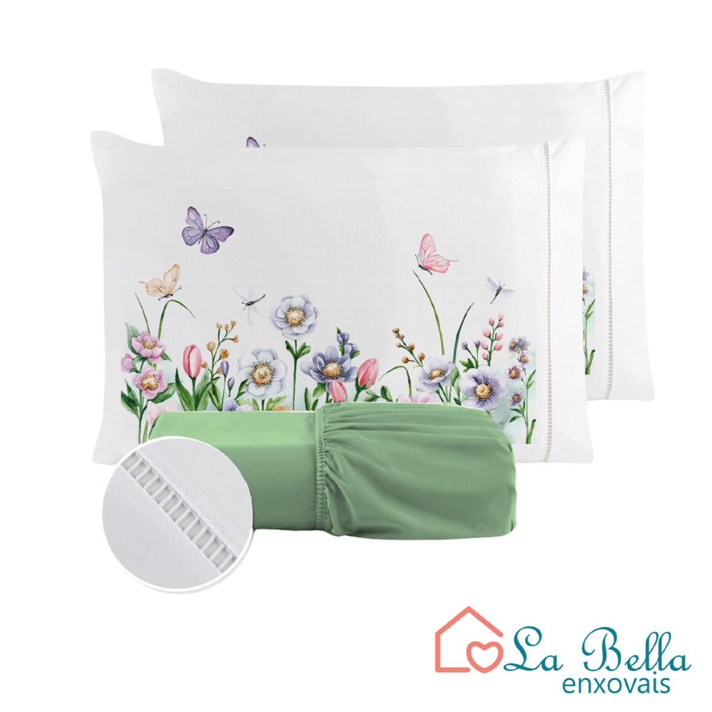 Jogo de Lençol Fronha Borboleta Estampada Micropercal 400 Fios Ponto Palito - ÚLTIMO LANÇAMENTO