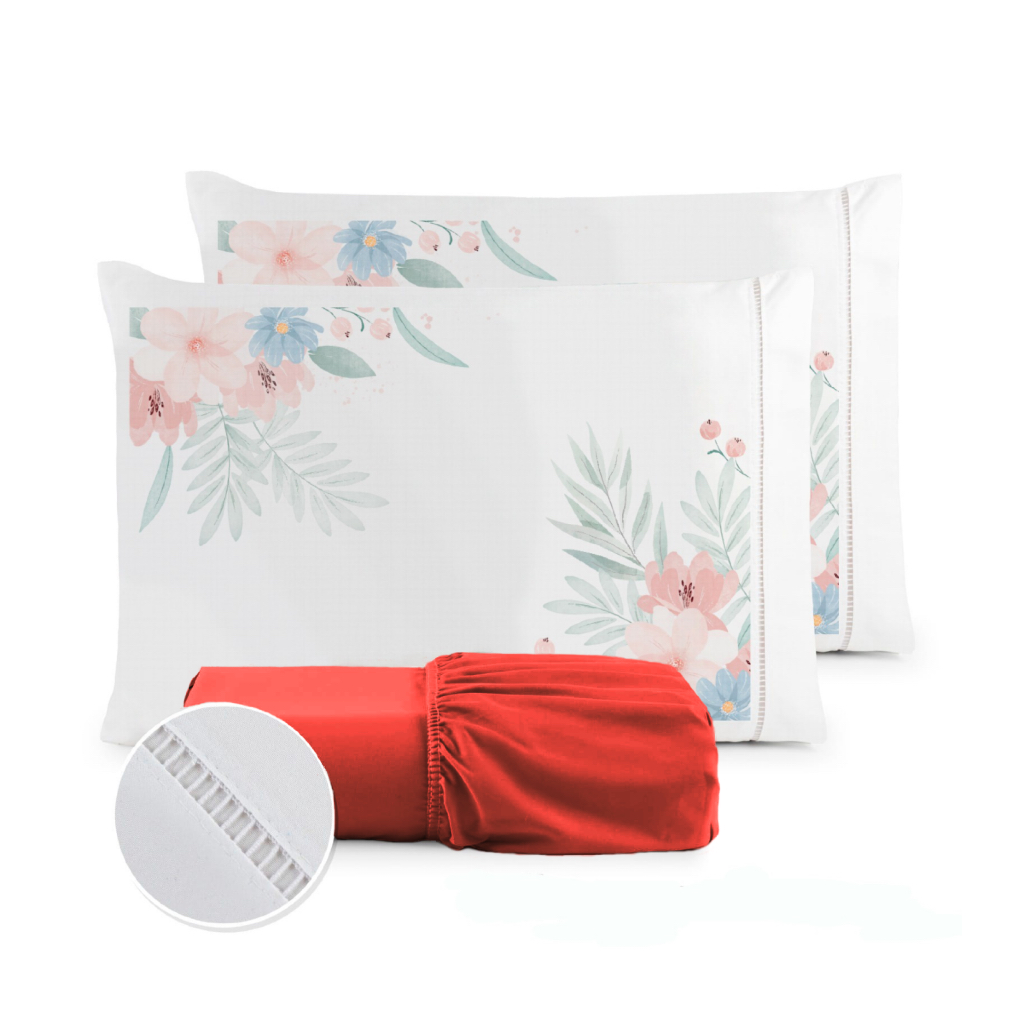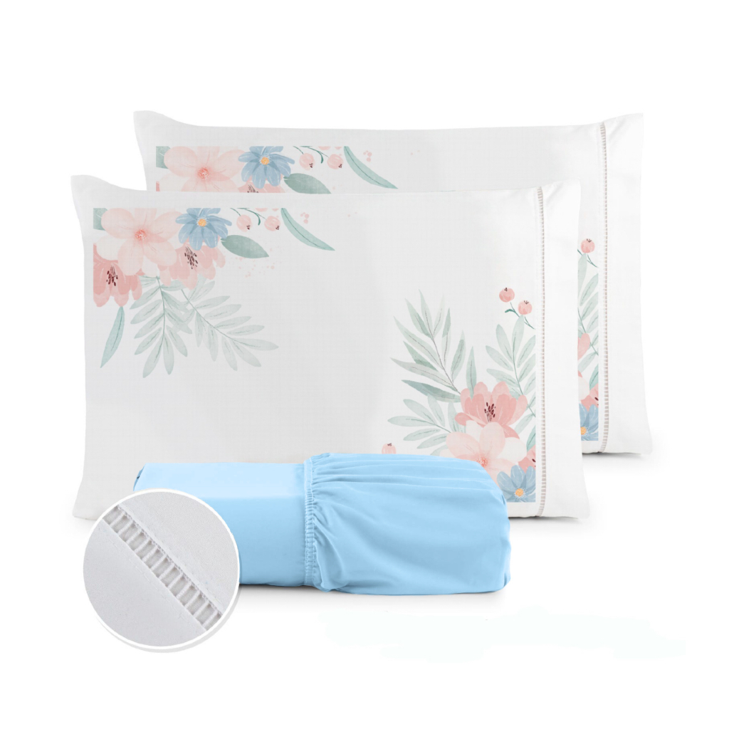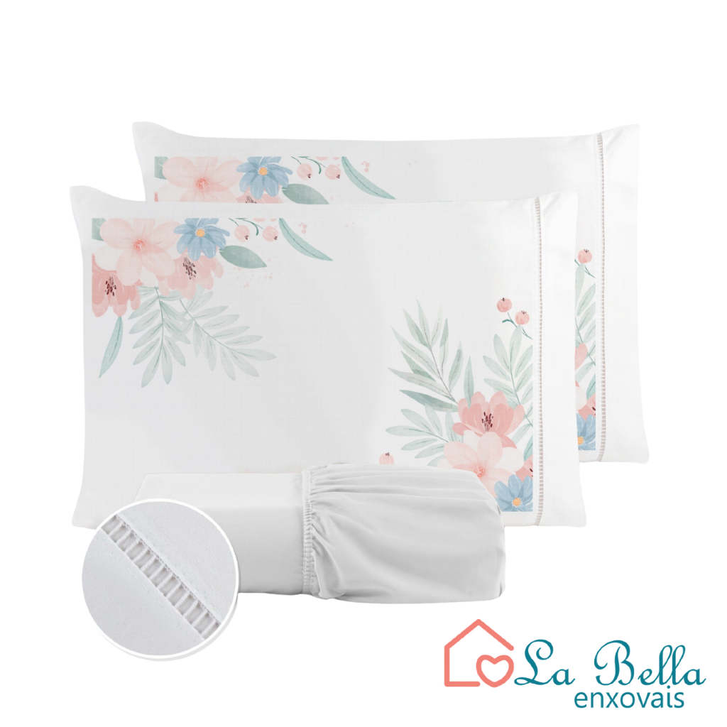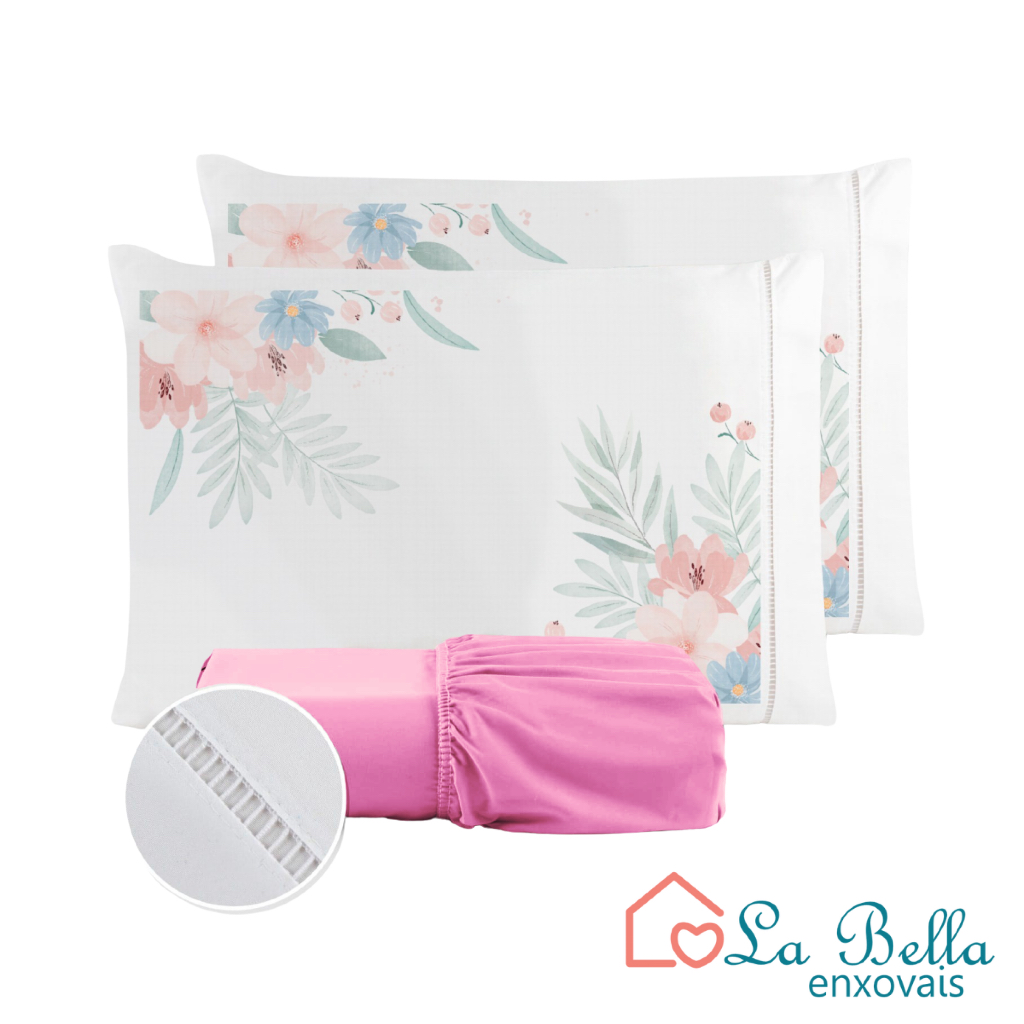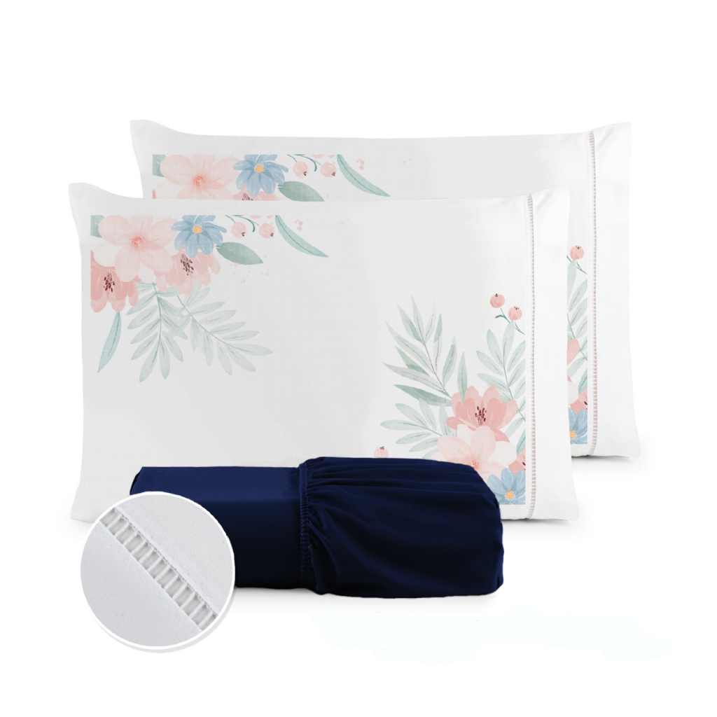 Jogo de Lençol Fronha Flor Rosa Estampada Micropercal 400 Fios Ponto Palito - ÚLTIMO LANÇAMENTO