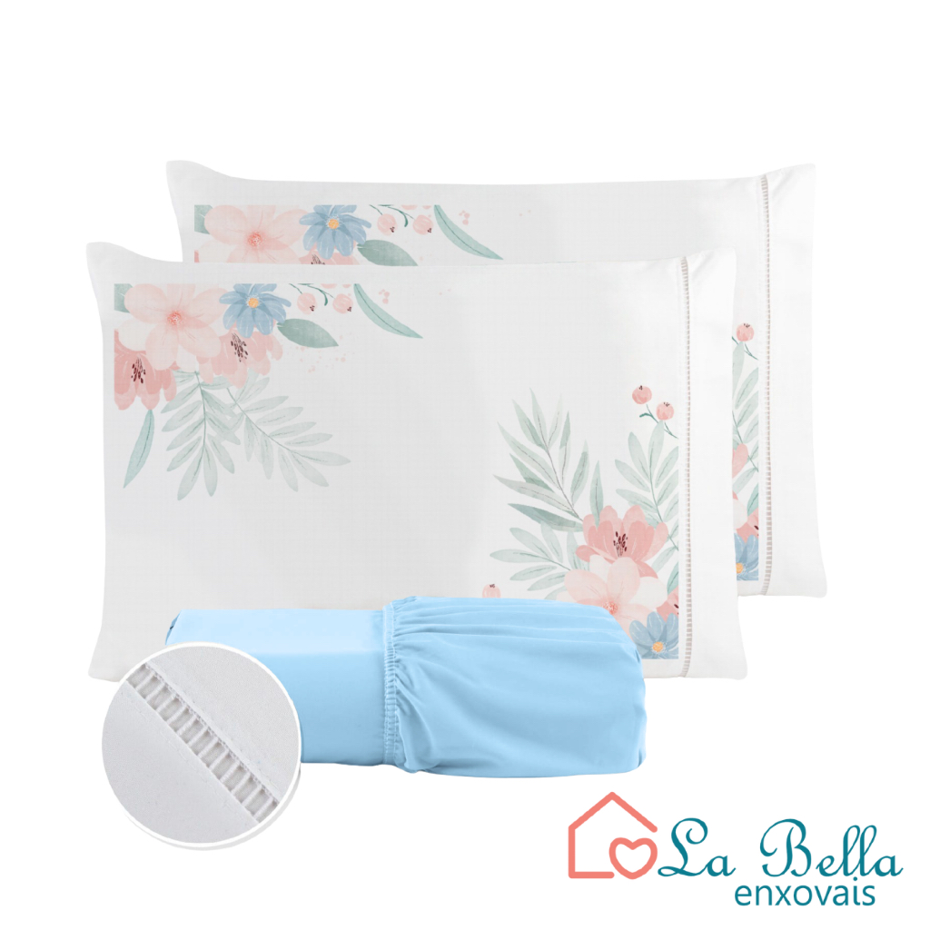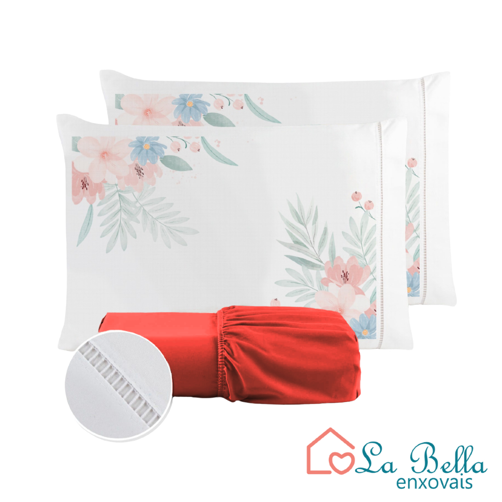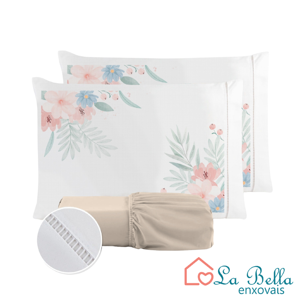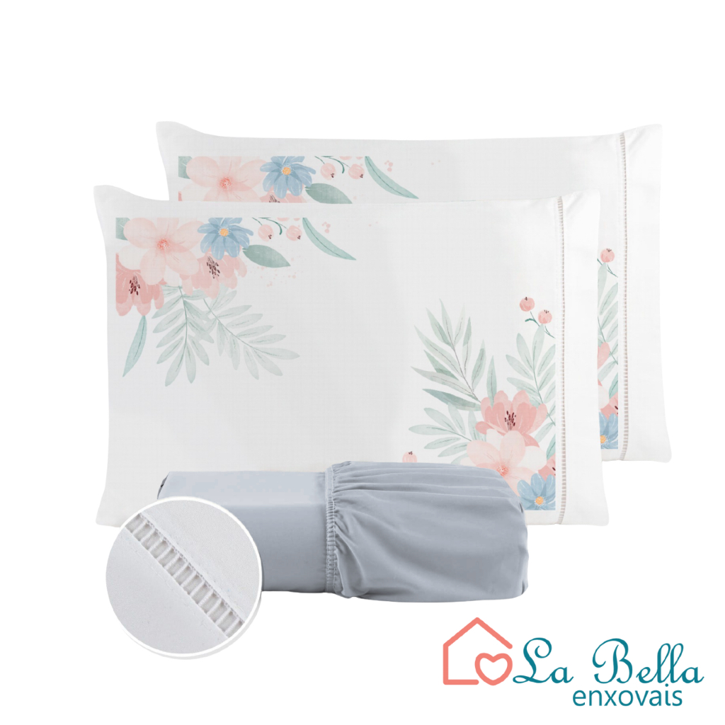 Jogo de Lençol Fronha Flor Rosa Estampada Micropercal 400 Fios Ponto Palito - ÚLTIMO LANÇAMENTO
