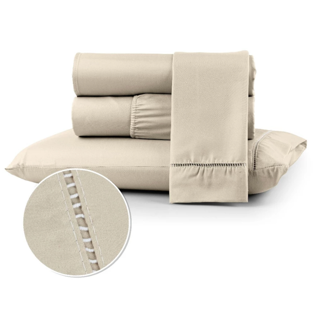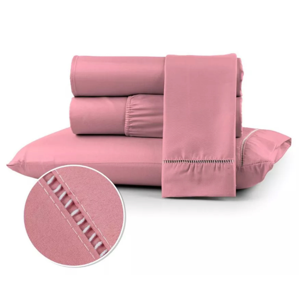 Jogo de Lençol Kit Solteiro Casal Queen King 400 fios Toque Extremamente Macio Detalhe Ponto Palito