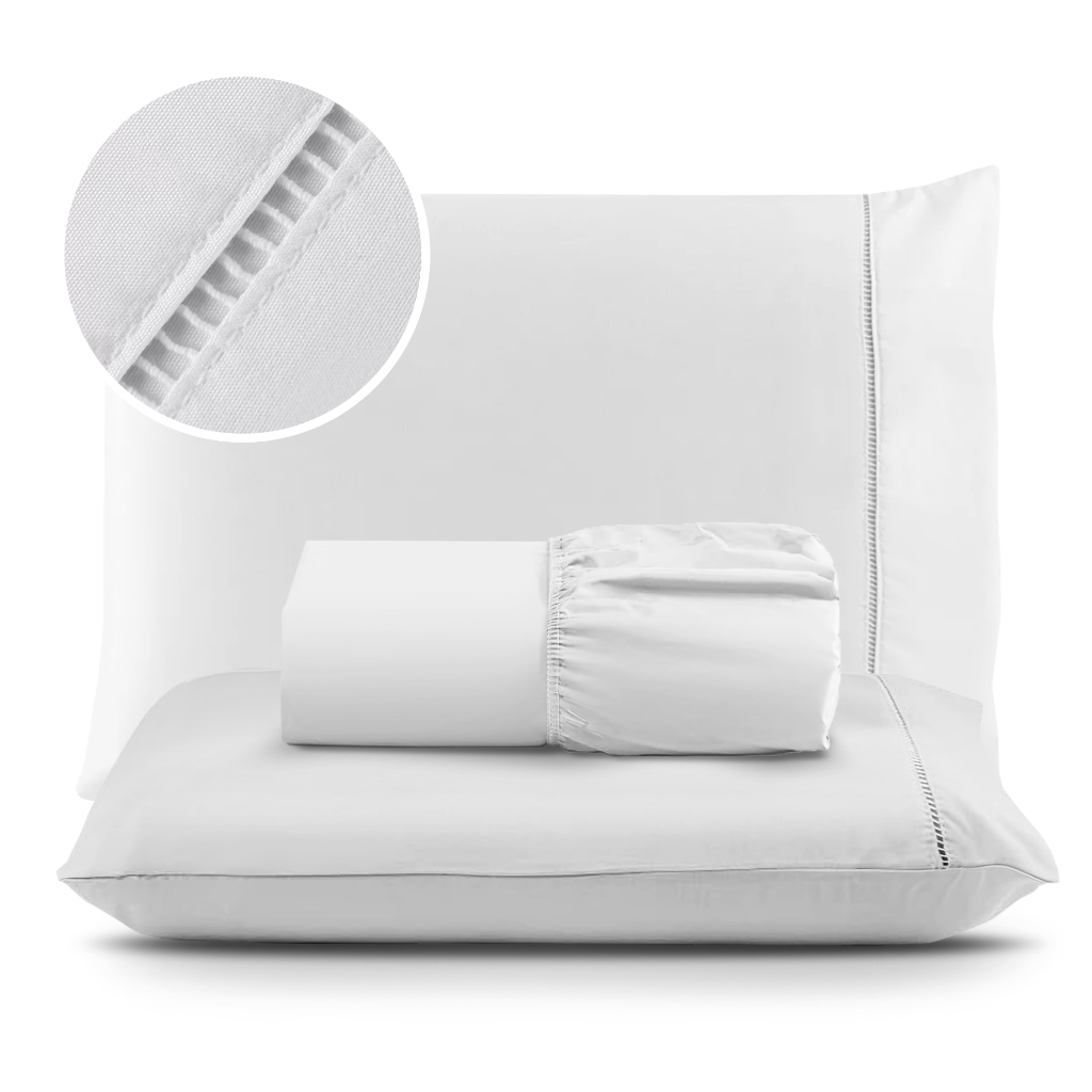 Jogo de Lençol Micropercal Antialérgico 400 Fios Ponto Palito - Solteiro / Casal / Queen / King