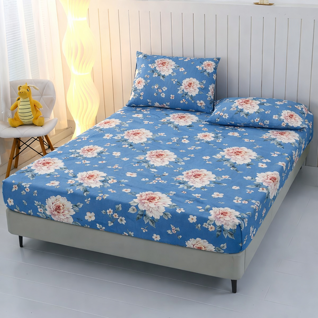Jogo de Lençol Percal 400 Fios 3 Peças Estampado Ponto Palito Leve e Macio com Elástico