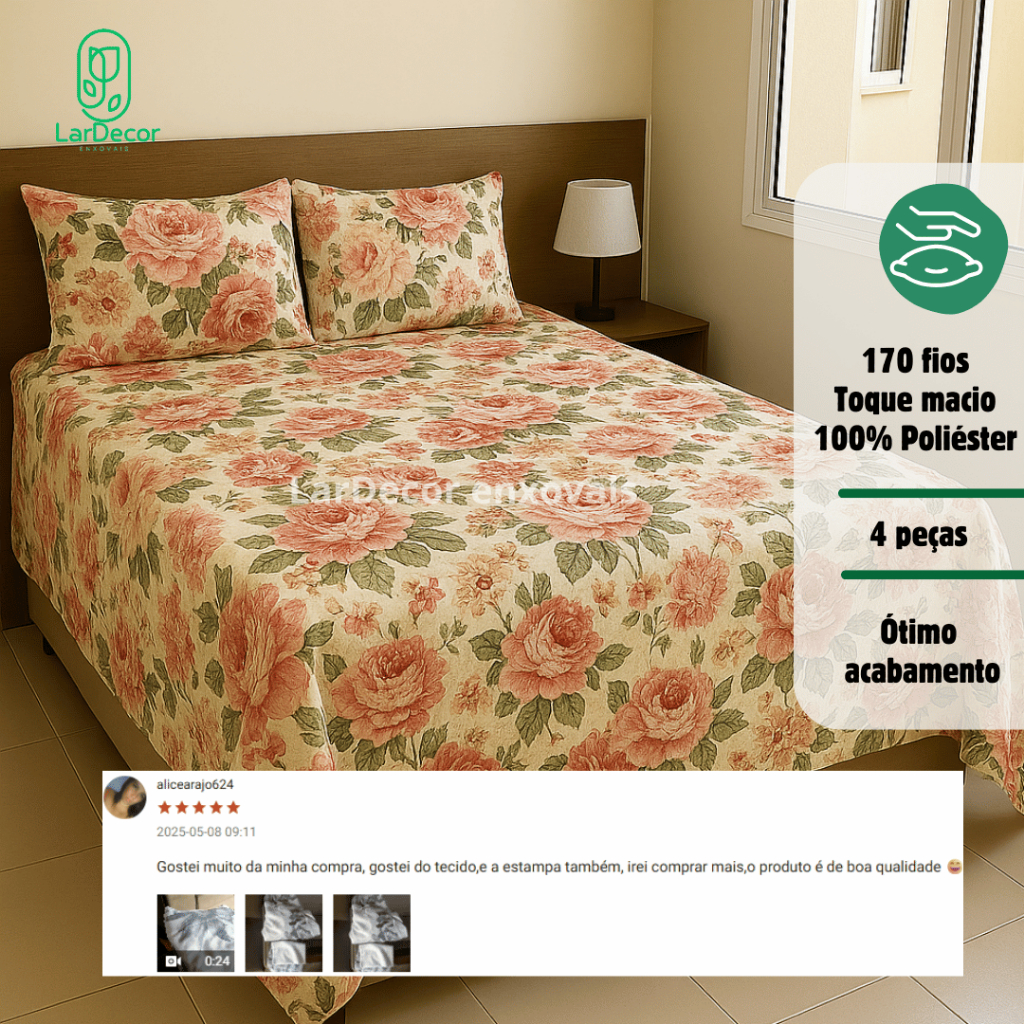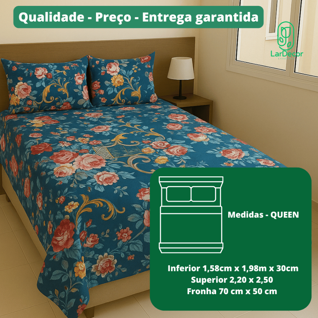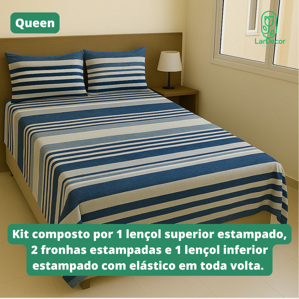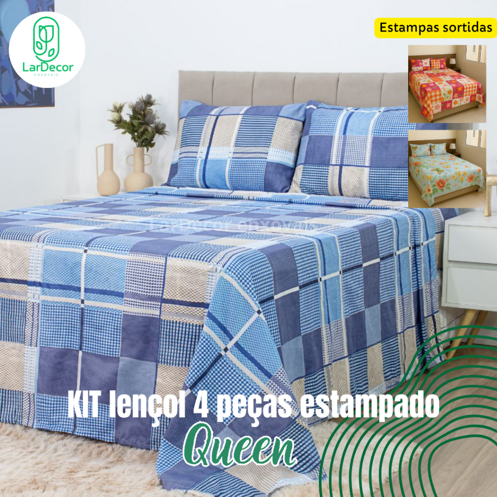 Jogo de Lençol Queen 4 Peças Microfibra Toque Acetinado com elastico - Estampas Sortidas
