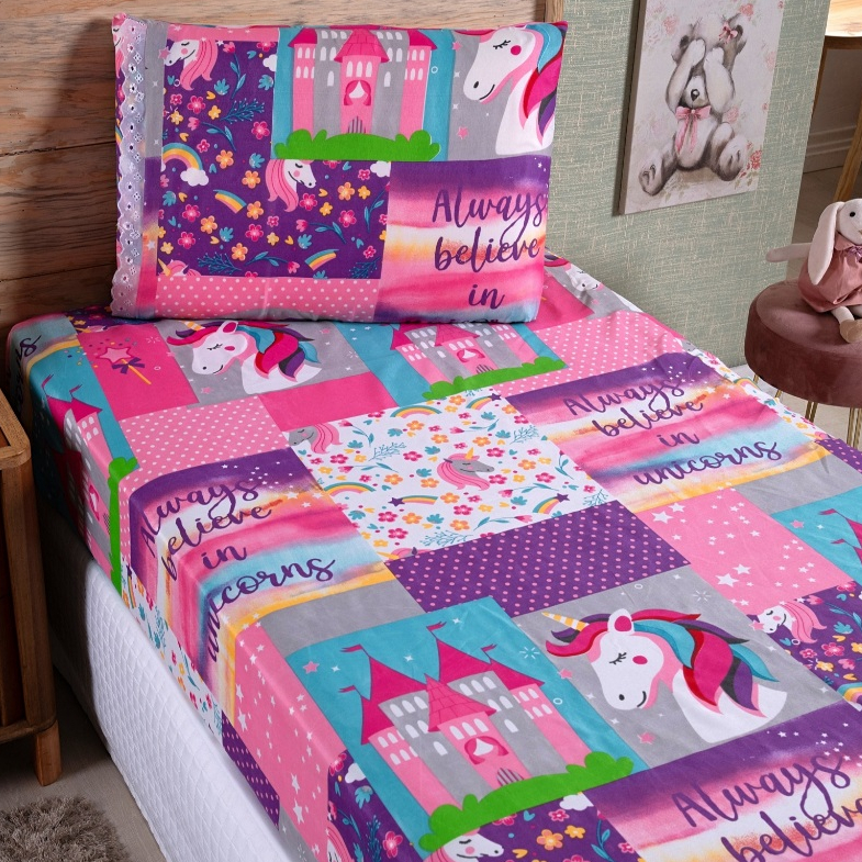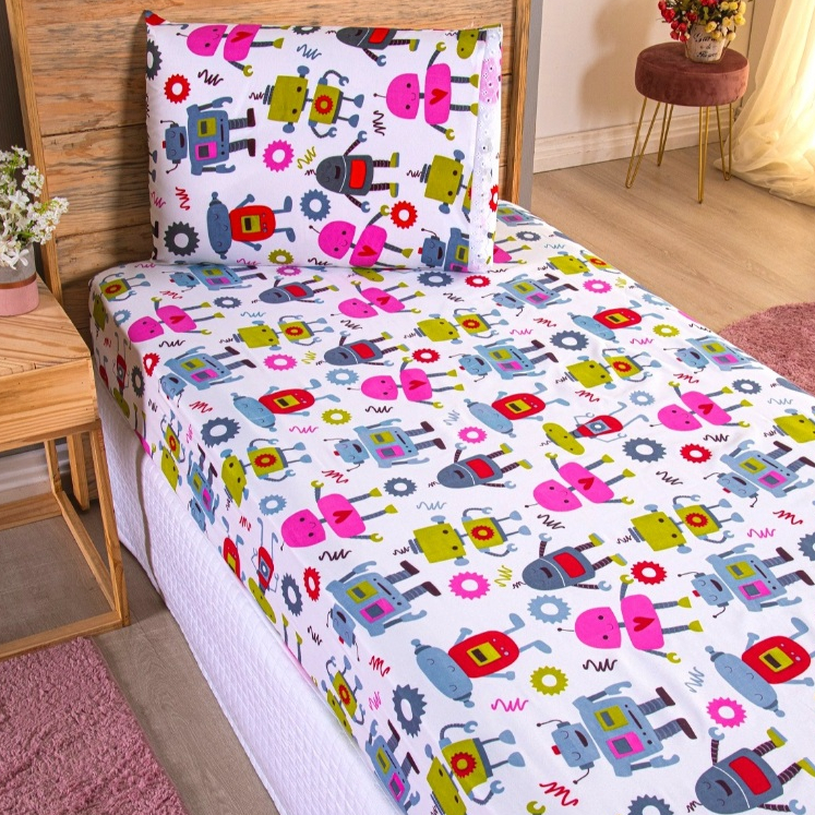 Jogo de Lençol Solteiro 02 Peças Estampas Diversas Para Menino e Menina