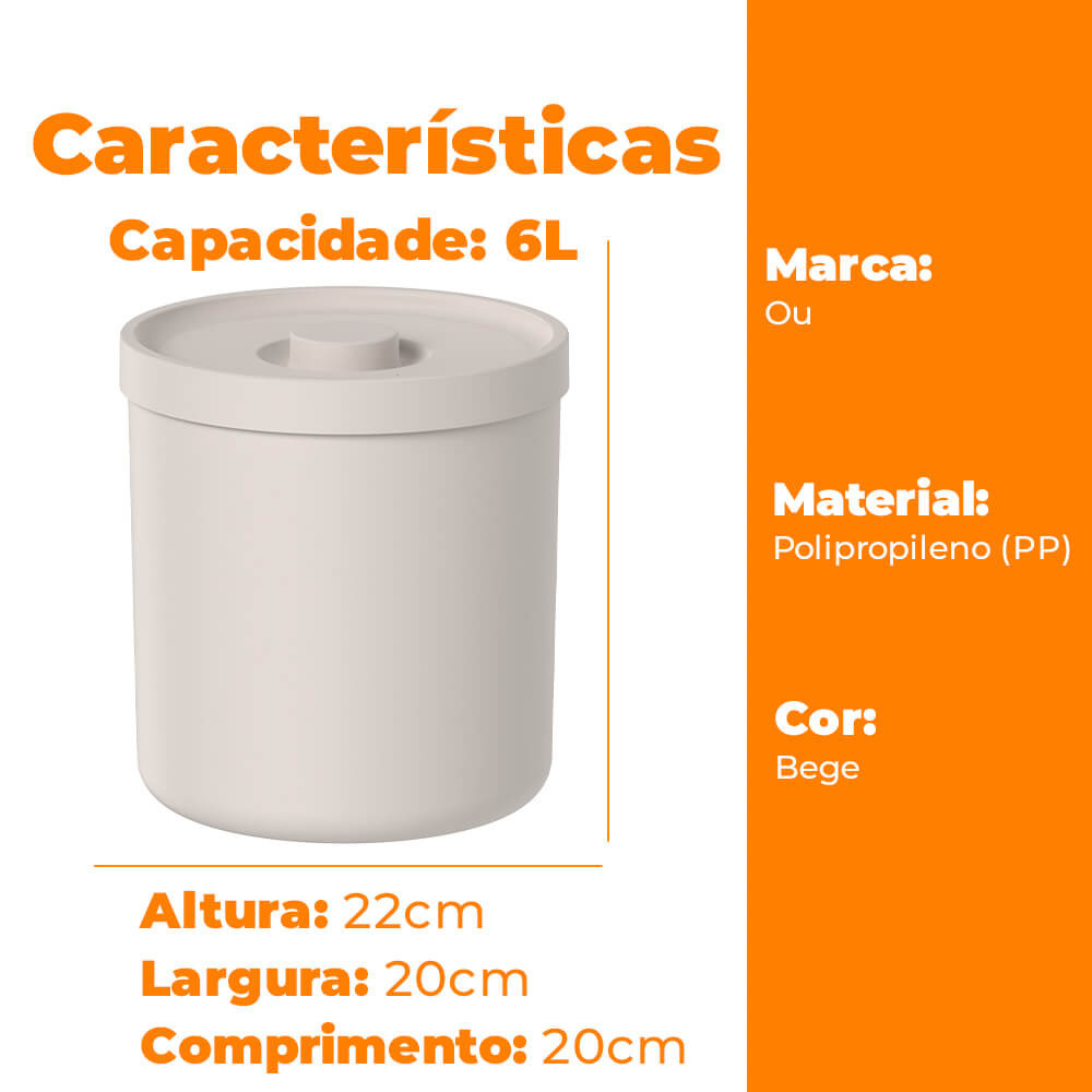 Jogo de Lixeiras para Banheiro e Cozinha com Tampa Bold Bege 6L 2 peças - Ou