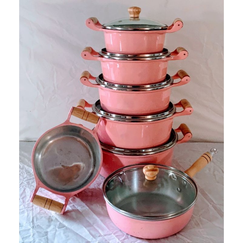 Jogo de Panela Rosa Bebê Super Grossas Tampa de Vidro + Frigideira
