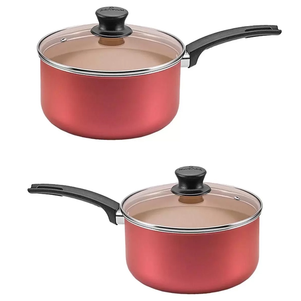 Jogo de Panela Antiaderente Teflon Cereja Tampa Vidro 10Uni Panelux Magnific