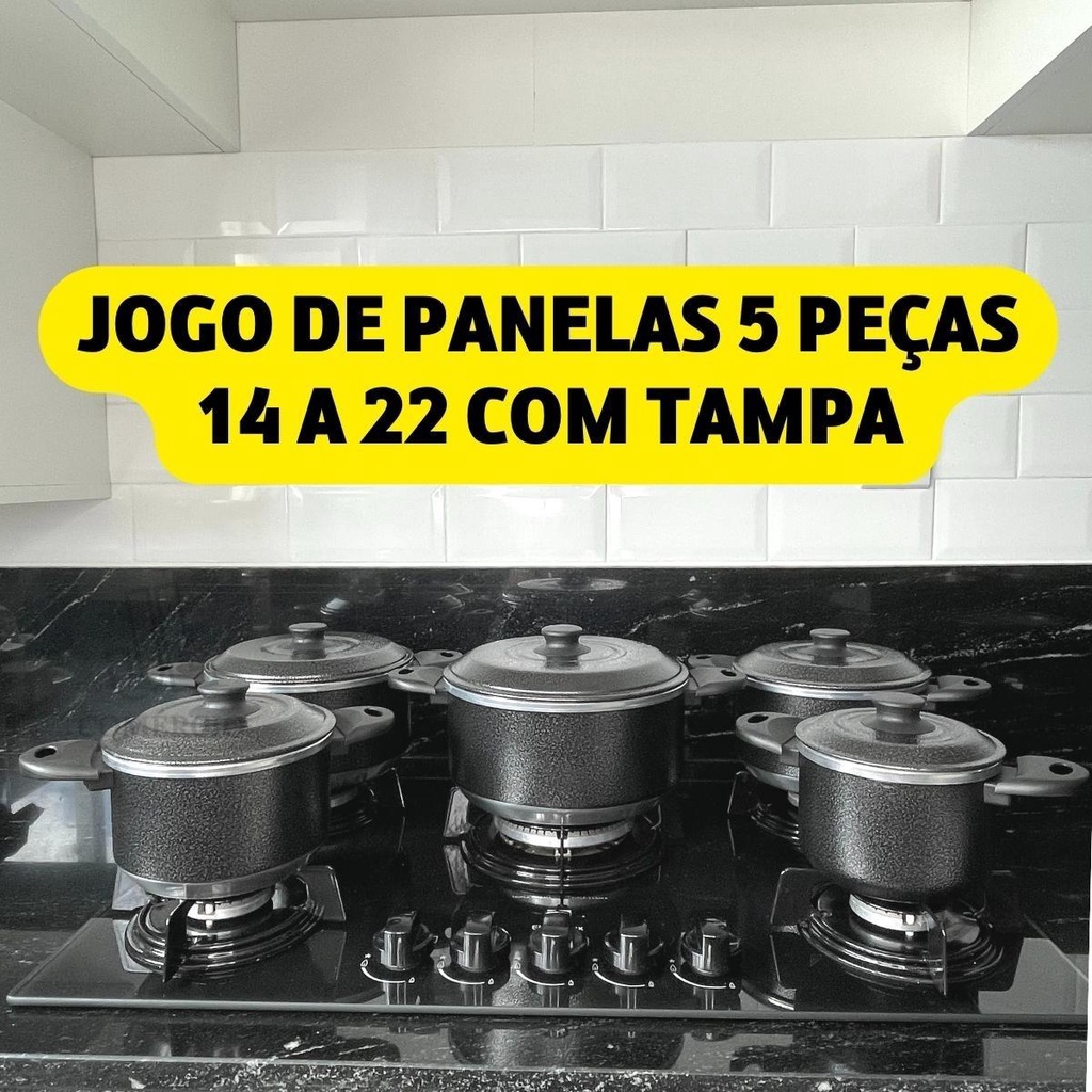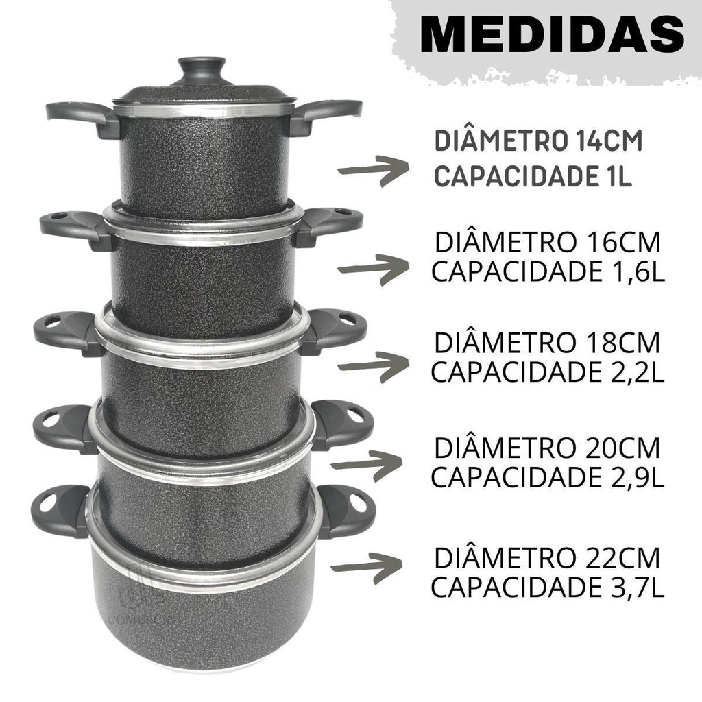 Jogo de Panela Preto Craqueado 6 peças + Panela de Pressão 4,5L + 3 Talheres Nylon Kit com 10 Peças