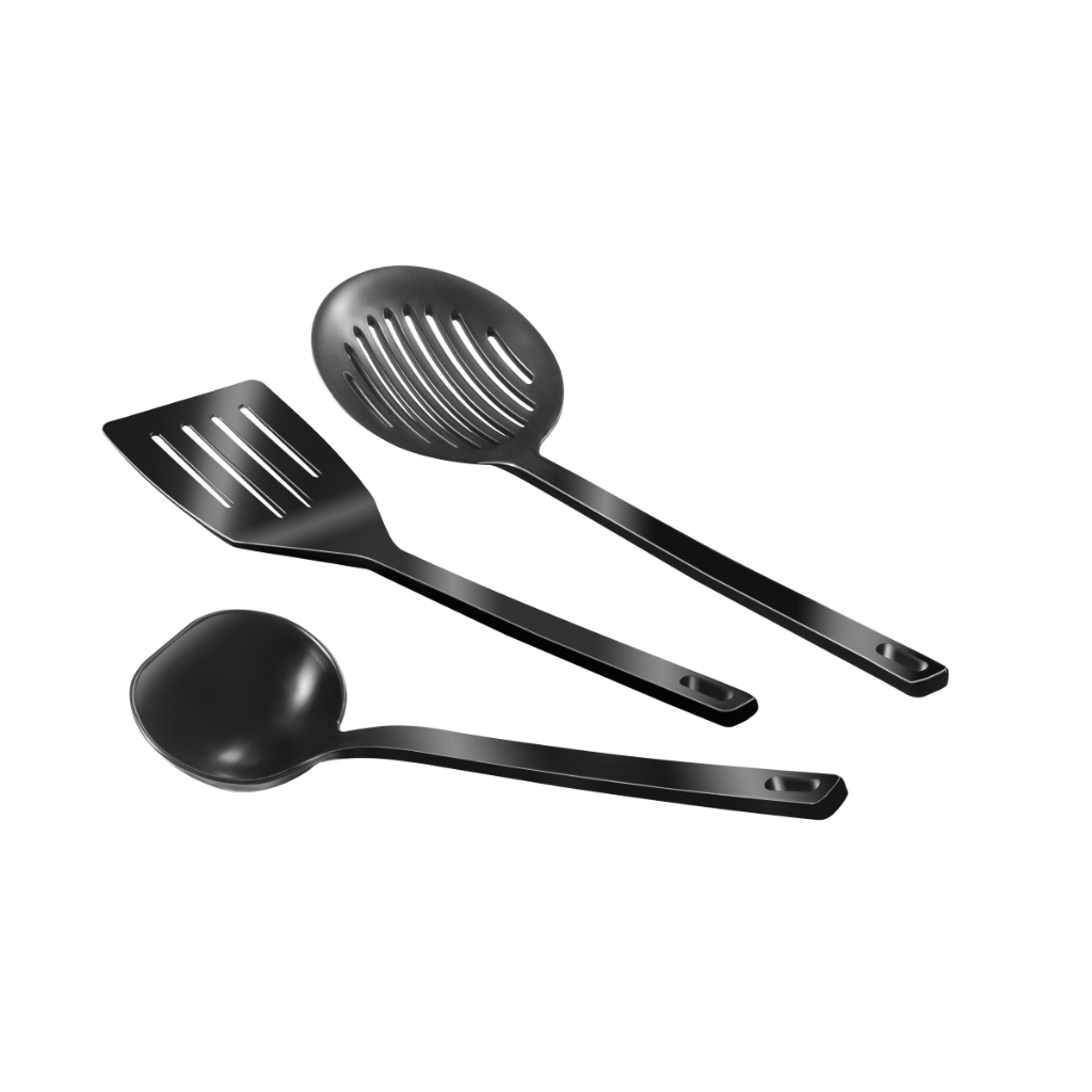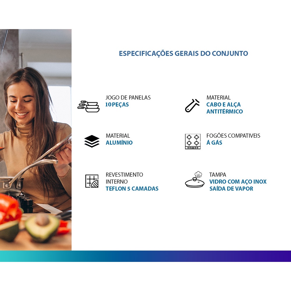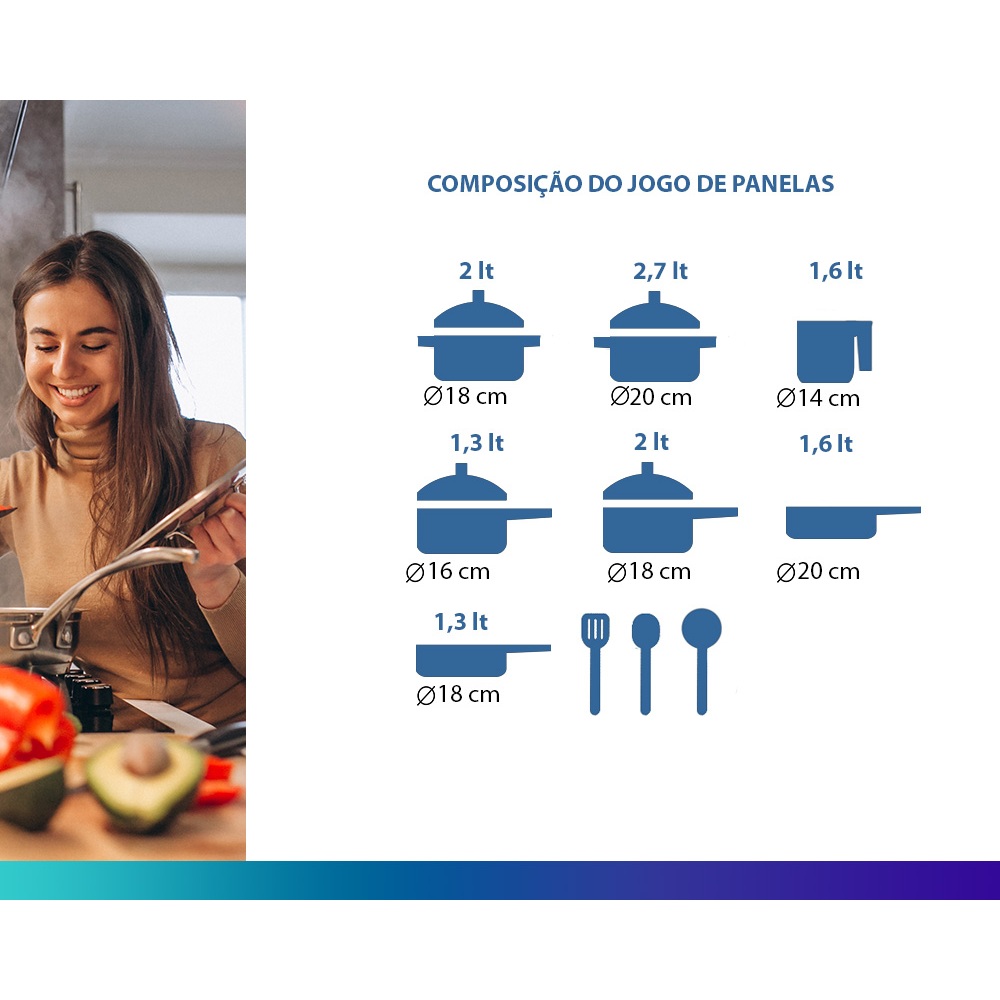 Jogo de Panelas 10 Peças Preto Antiaderente c/ Tampa de Vidro e Utensílios