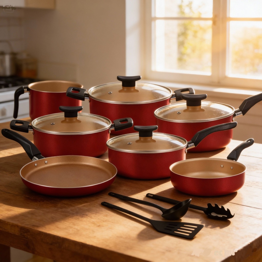 Jogo de Panelas D'Itália Teflon 10 Peças | Fácil de Limpar e Não Gruda + Utensílios e Tampa Vidro