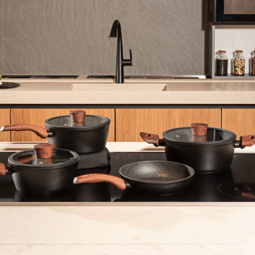 Jogo de Panelas 4 Peças Brinox Antiaderente Ceramic Life Sirius Preta e Vanilla - Com indução