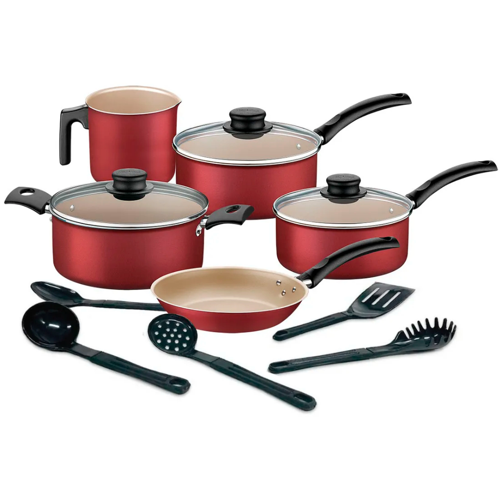 Jogo de Panelas 5 Peças Tramontina Turim e Conjunto de Utensílios 5 peças Preto