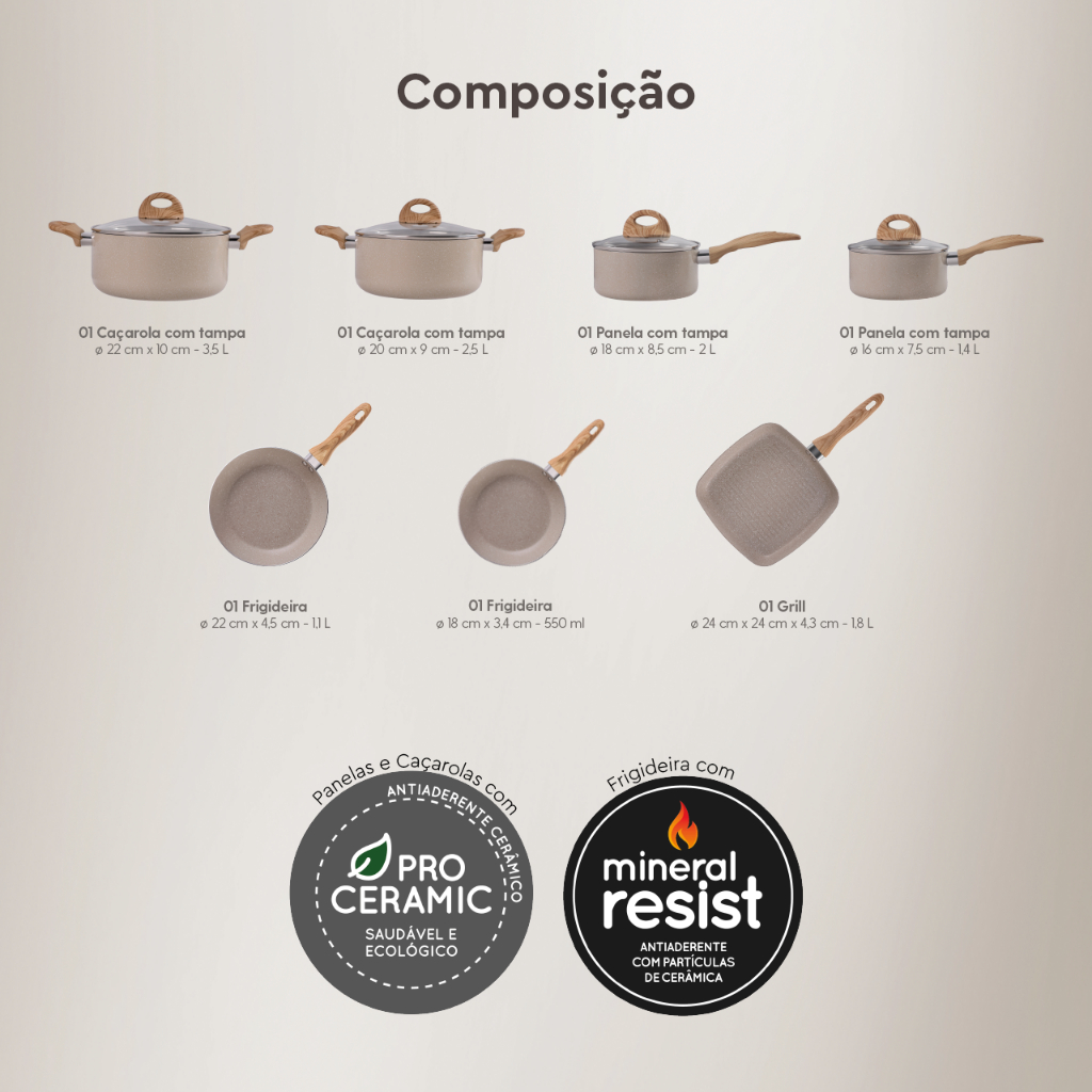 Jogo de Panelas 7 peças Smart Plus Areia indução Brinox