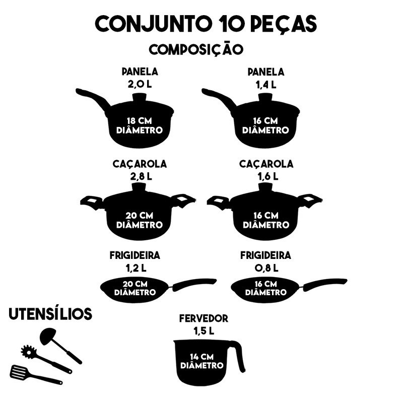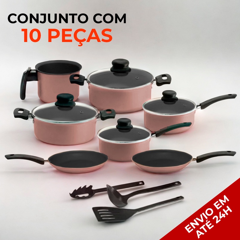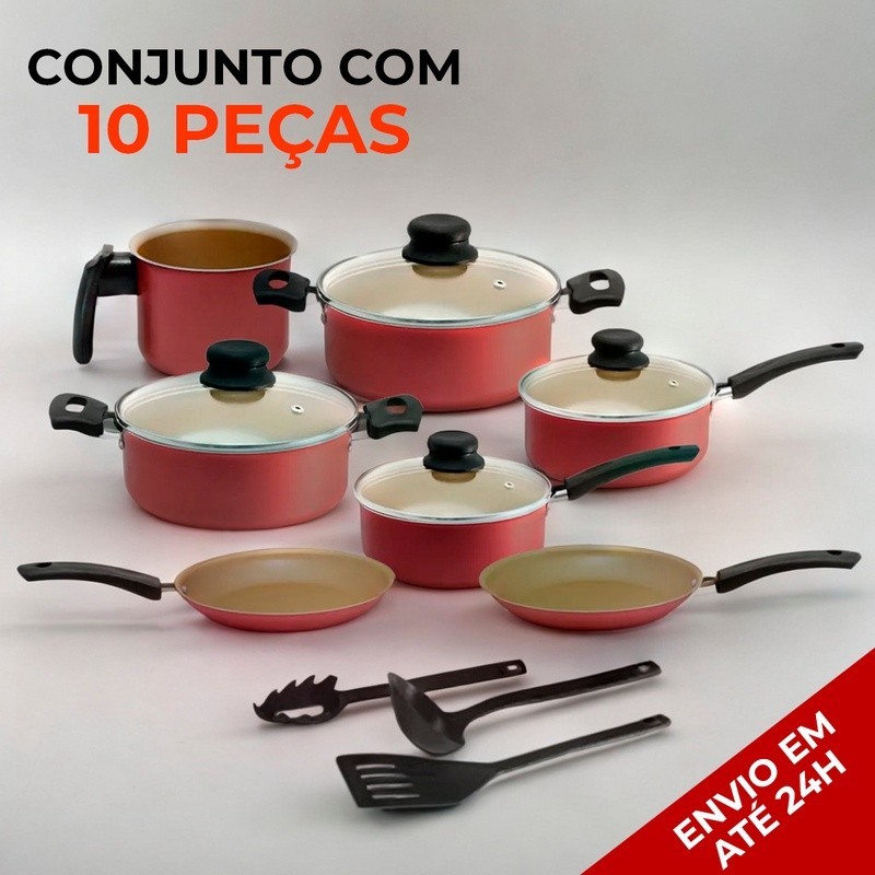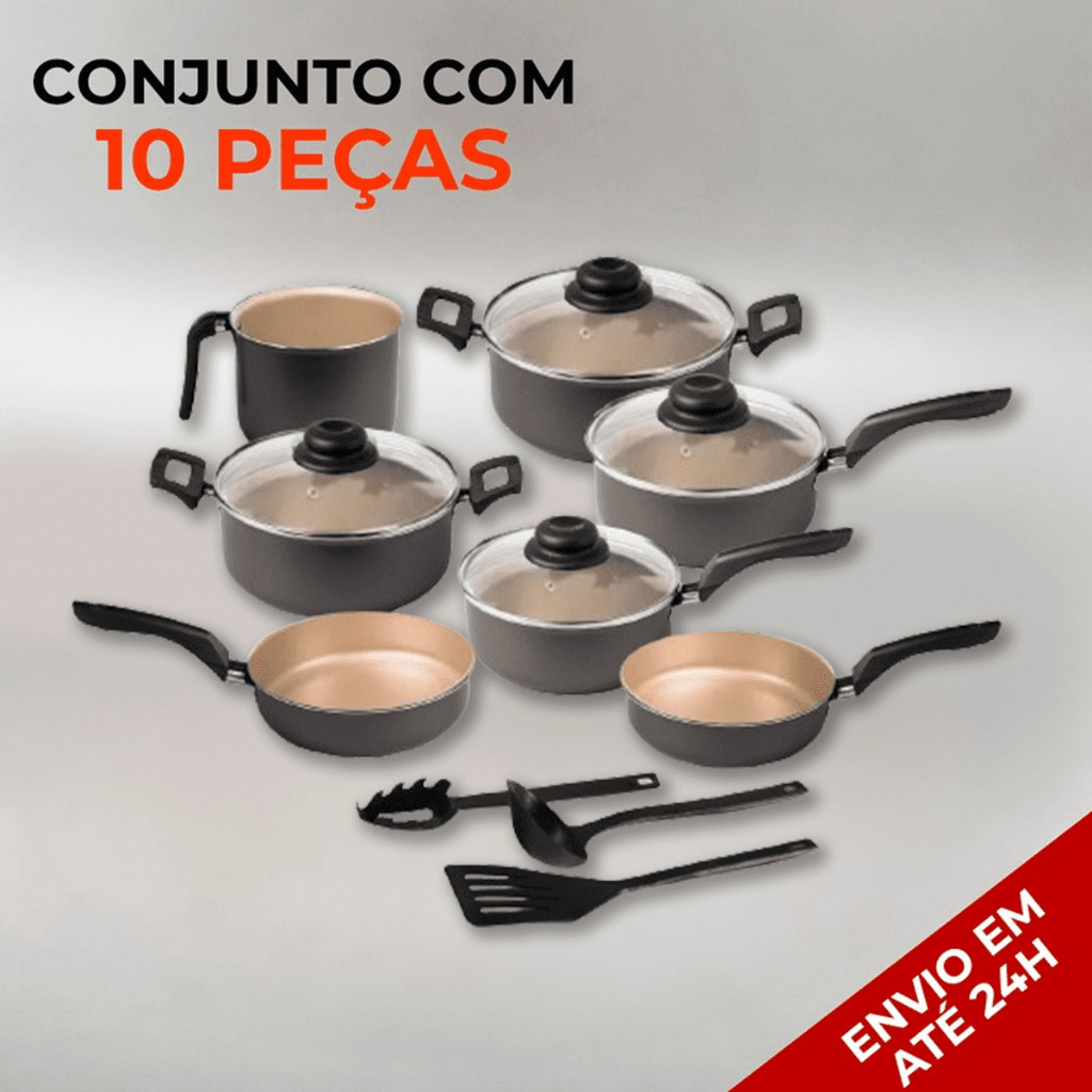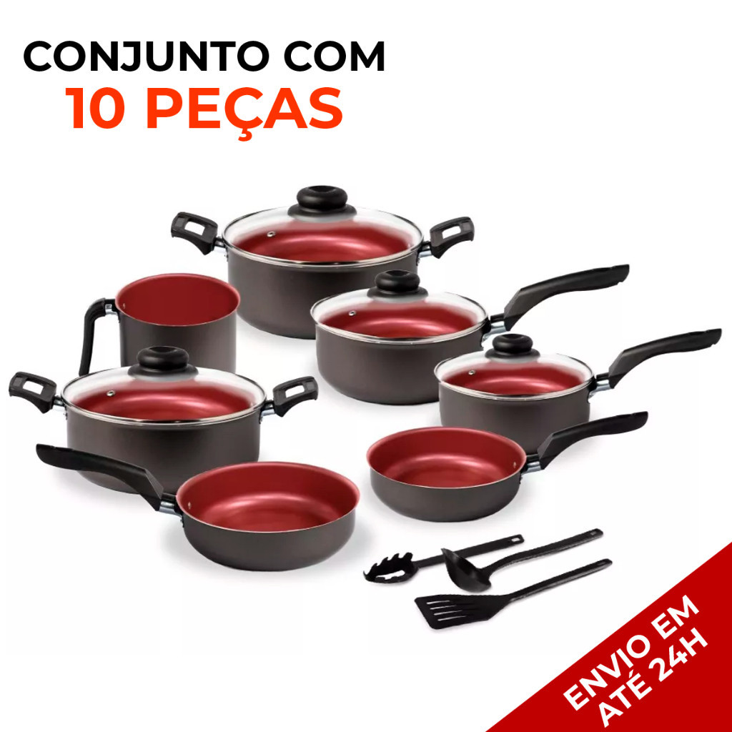 Jogo de Panelas Antiaderente 10 Peças Tampa de Vidro Teflon