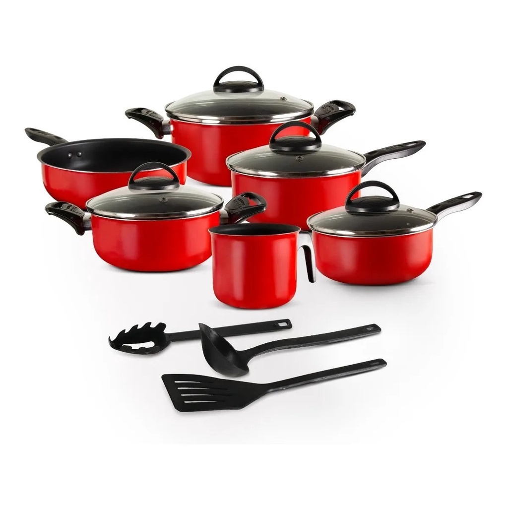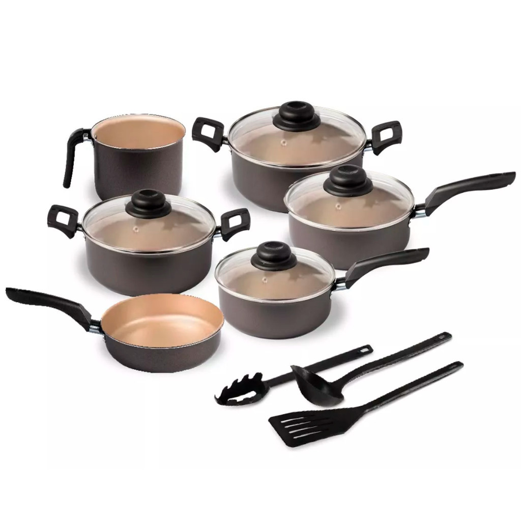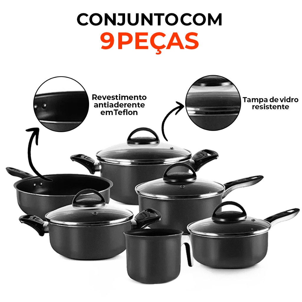 Jogo de Panelas Antiaderente 9 Peças Tampa de Vidro Teflon