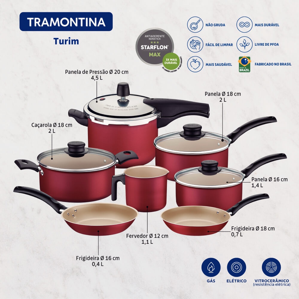Jogo de Panelas Antiaderente Turim Com Potes Tramontina