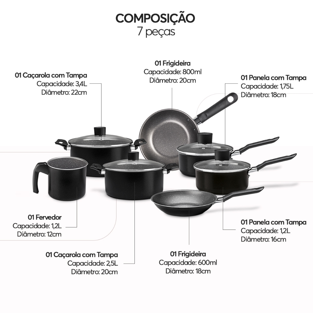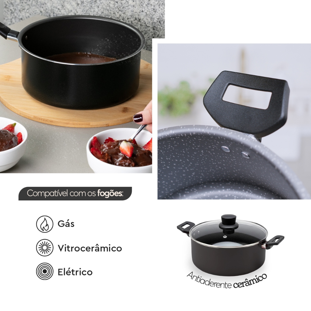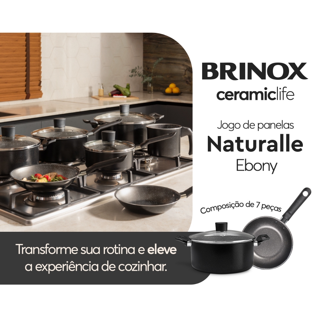 Jogo de Panelas Brinox Ceramic Life Naturalle 7 Peças Preto Ebony