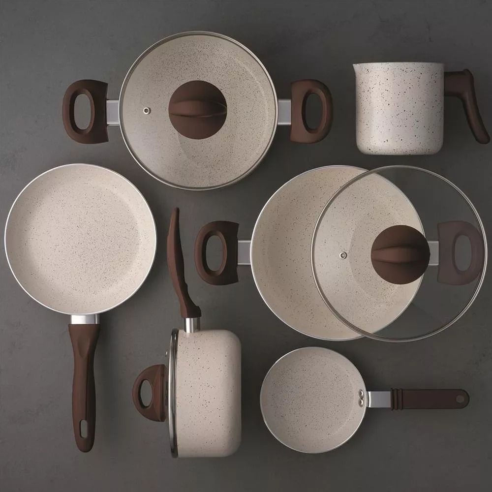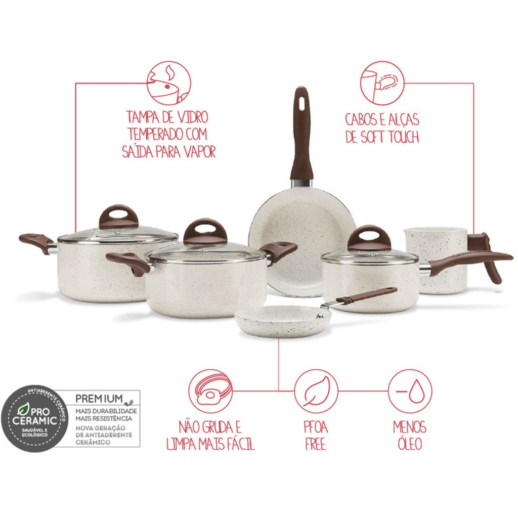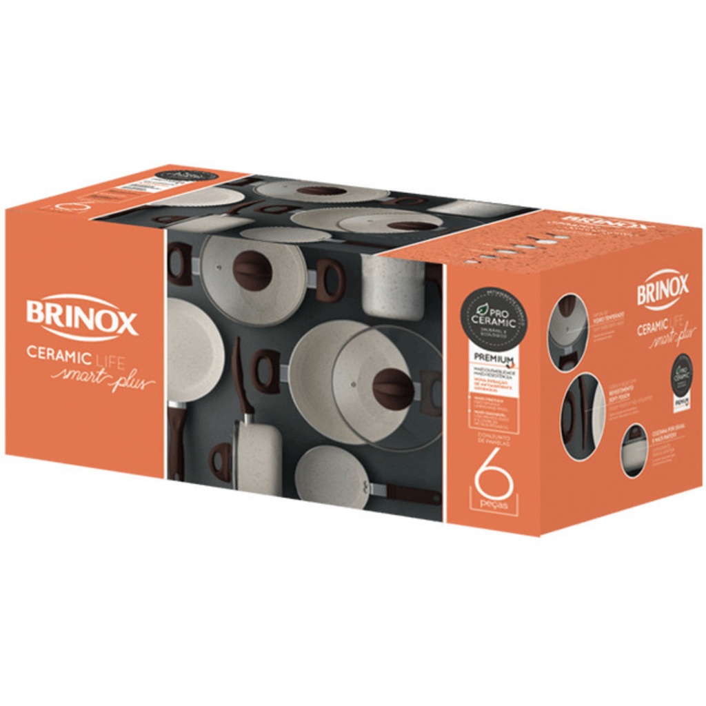 Jogo de Panelas Brinox Revestimento Cerâmico Granada 6 Pç Vanilla