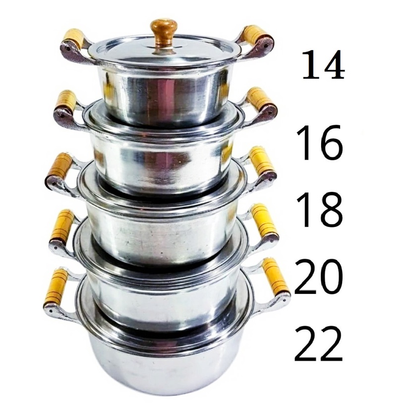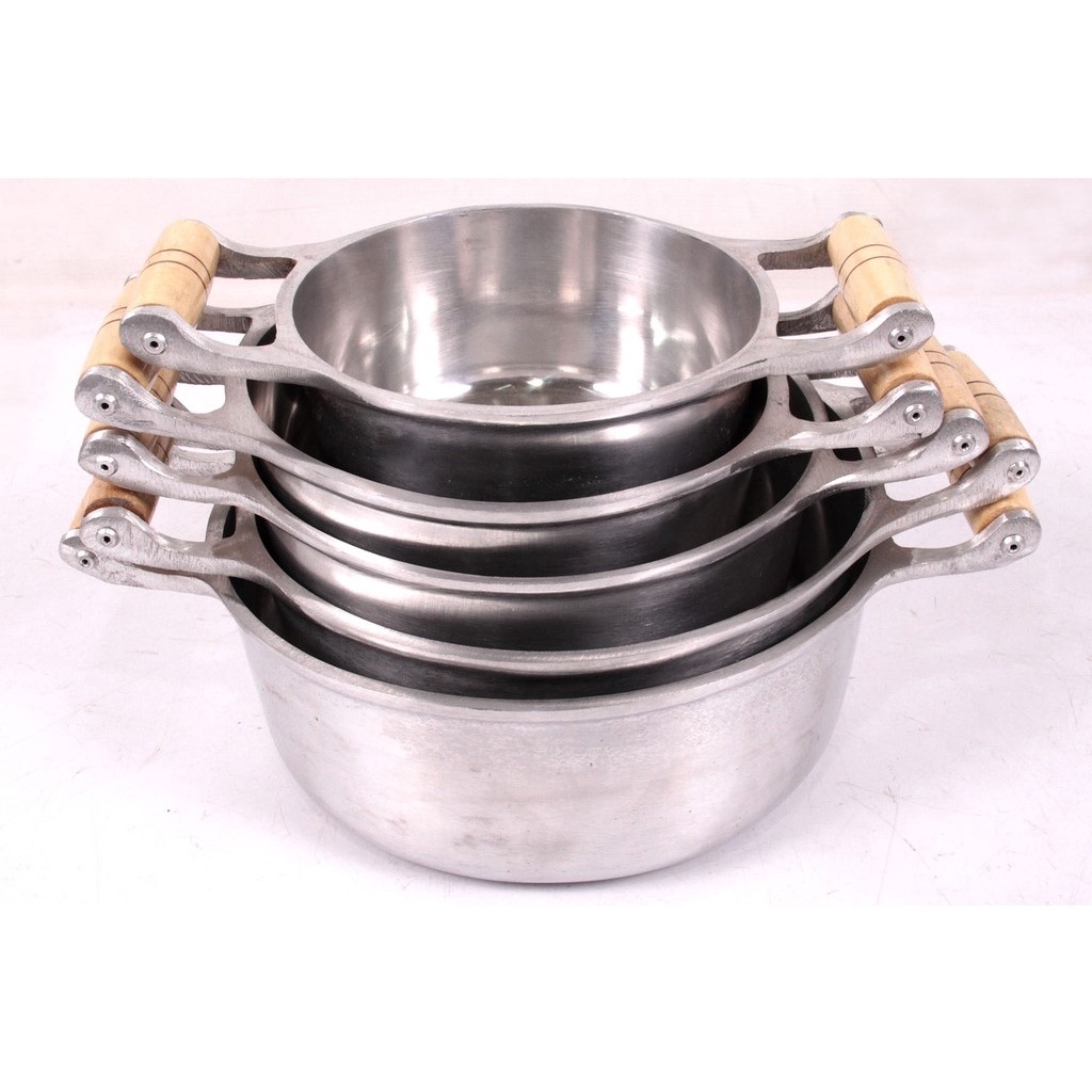 Jogo de Panelas Caçarolas Com 3 ou 5 Panela Grossas de Ferro Batido,Alumínio Fundido Asas de Madeira ou Ferro