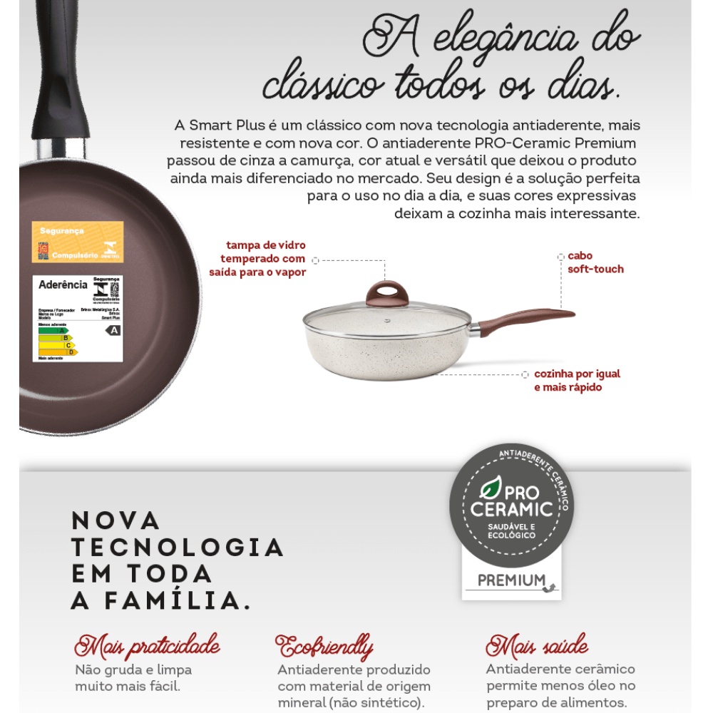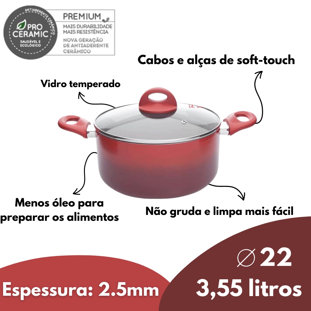 Jogo de Panelas Ceramic Life Brinox 4 Pecas - Vermelho