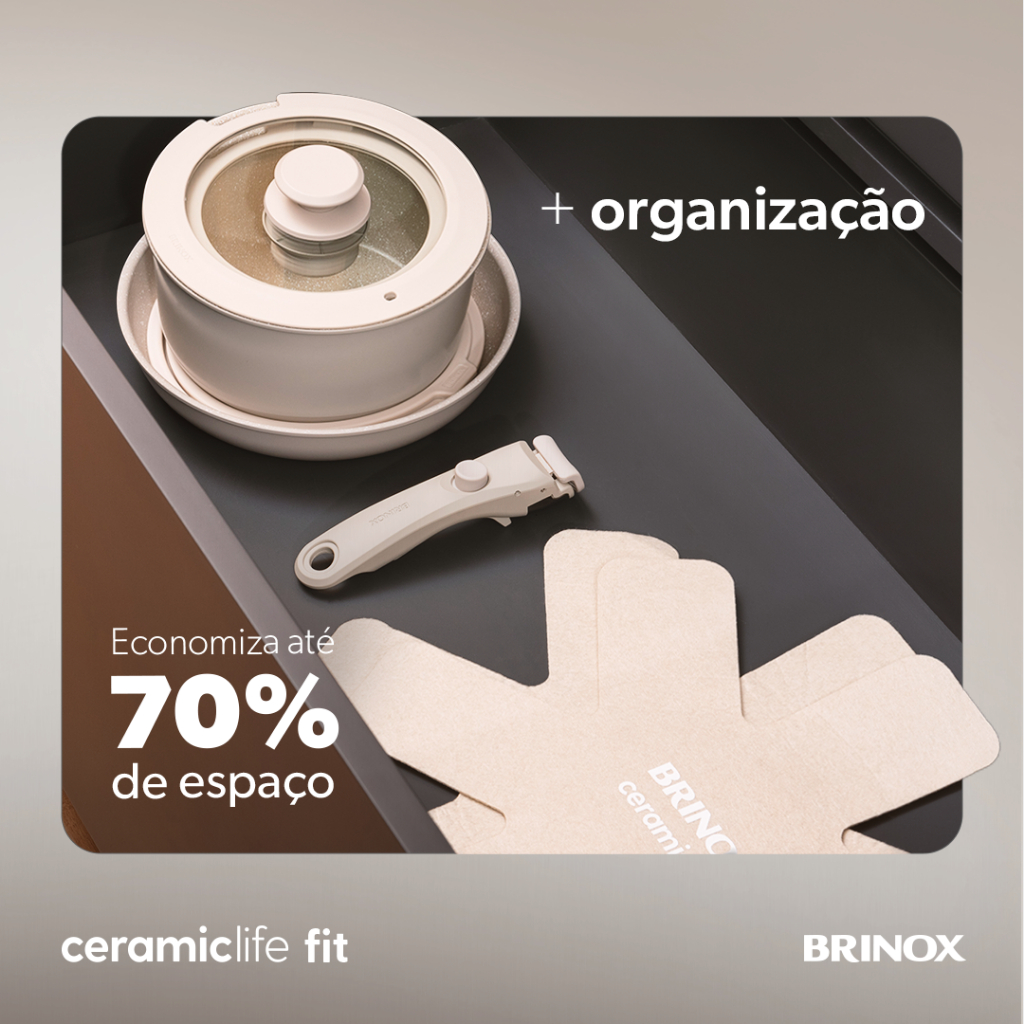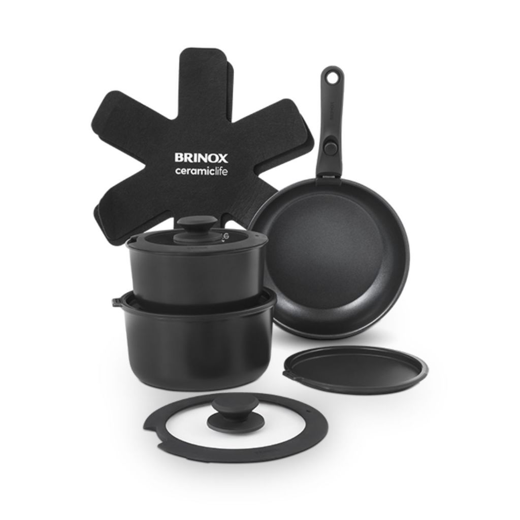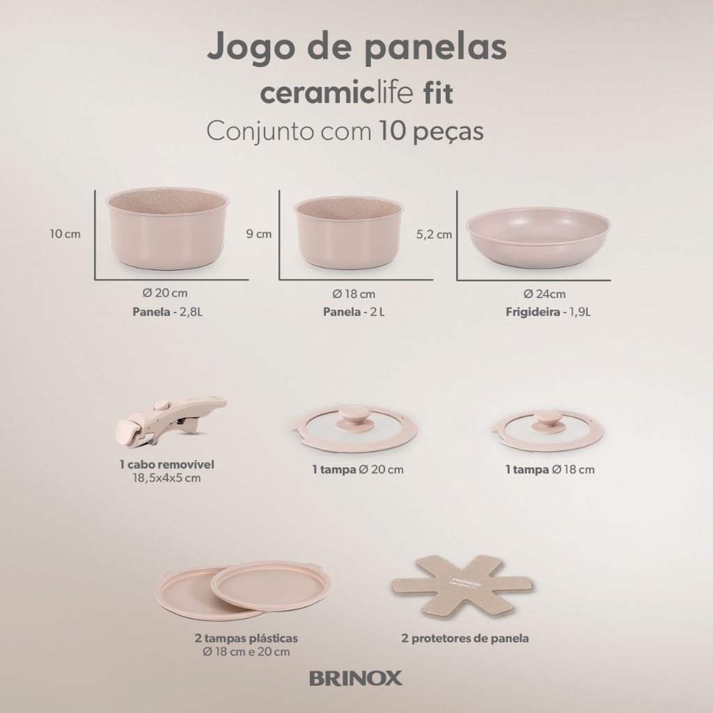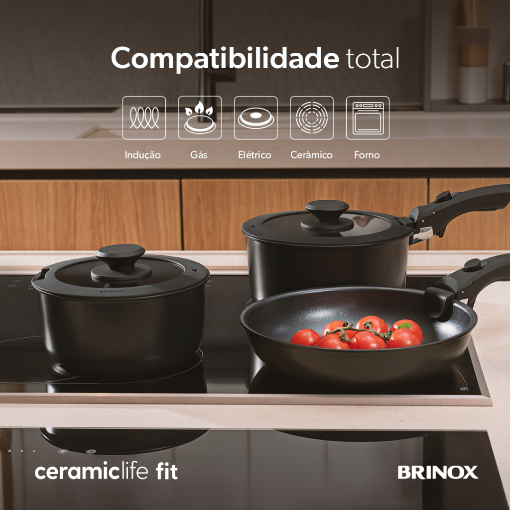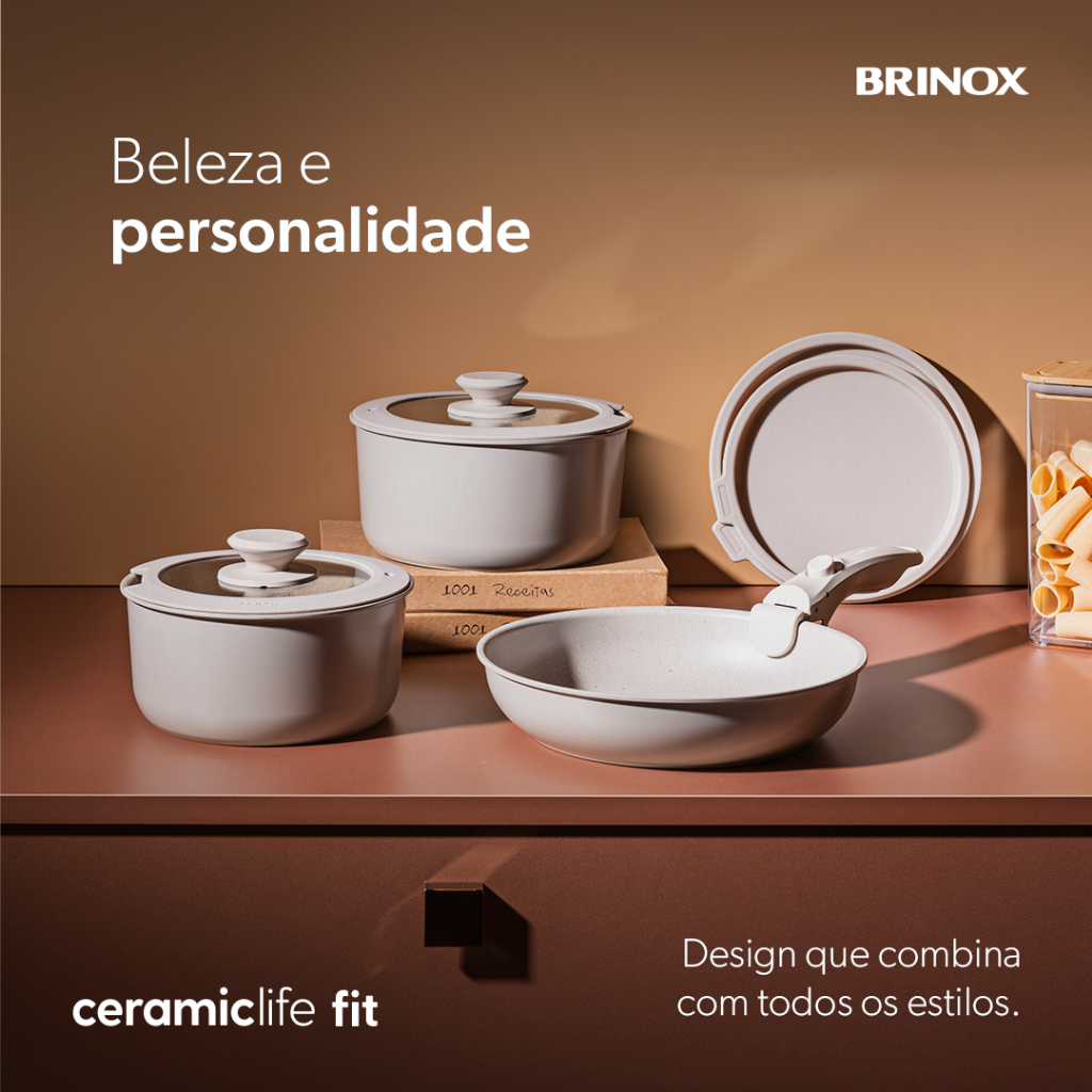 Jogo de Panelas Empilhável Brinox Ceramic Life Fit 10 Peças - Antiaderente Cerâmico Fundo de Indução
