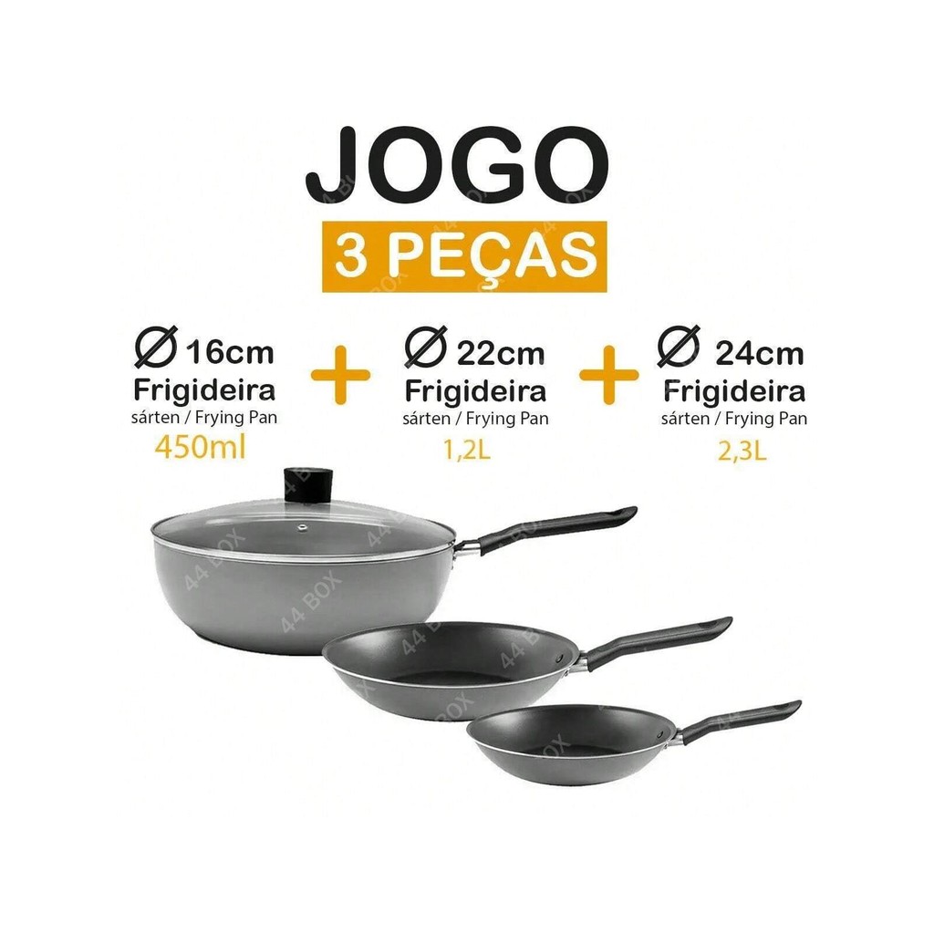 Jogo de Panelas Frigideira e Wok 3 Tamanhos Brinox Antiaderente PRO-FLON Não Gruda