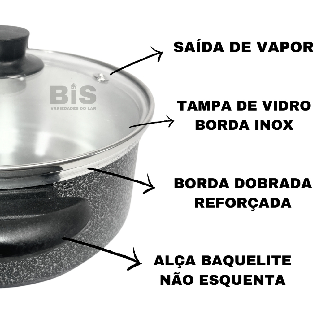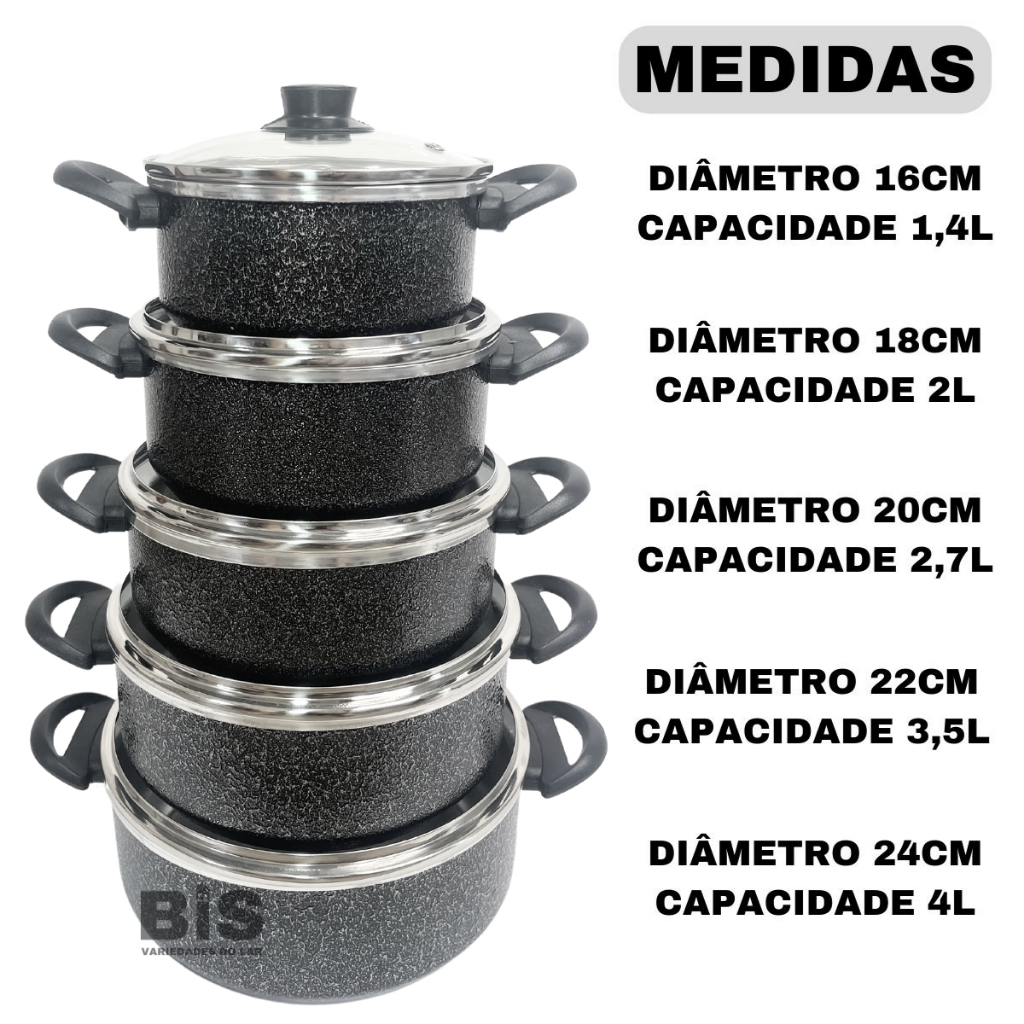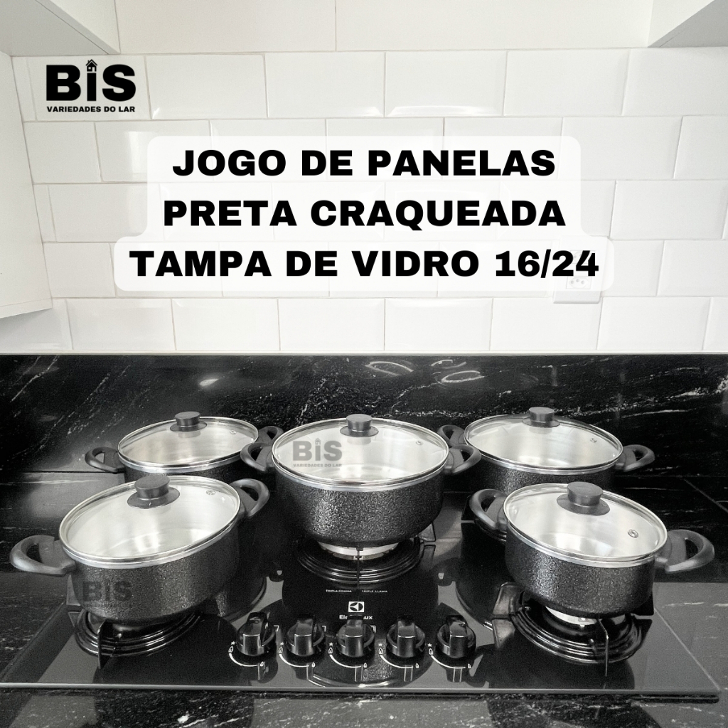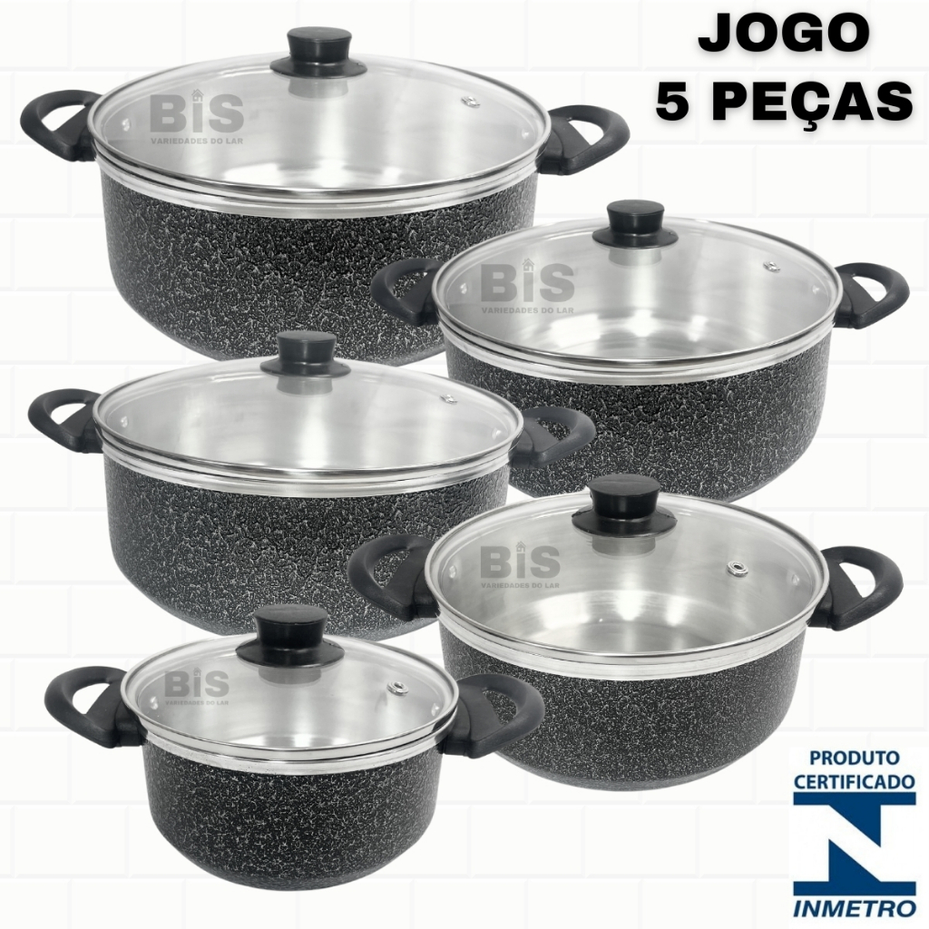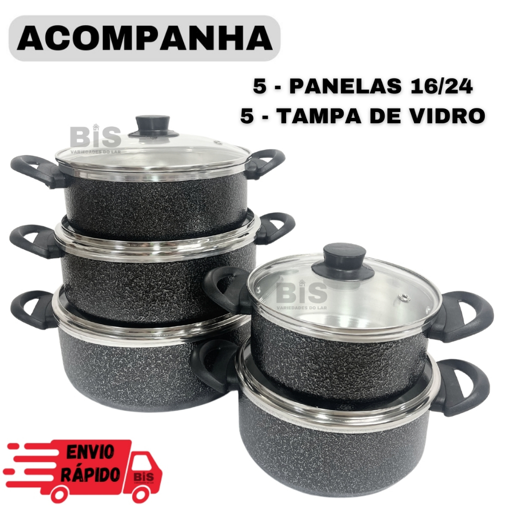 Jogo de Panelas Kit 5 Peças Com Tampa de Vidro Kit Caçarola 16/24