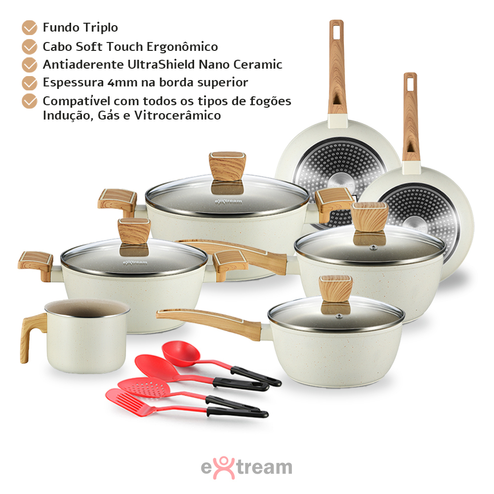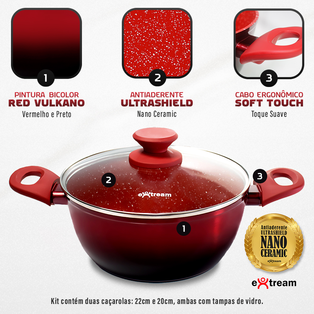 Jogo de Panelas Revestimento Ceramica Indução 11 peças Extream Rio Red Vulkano