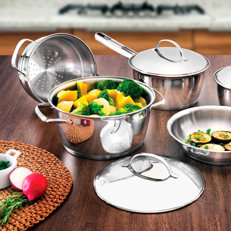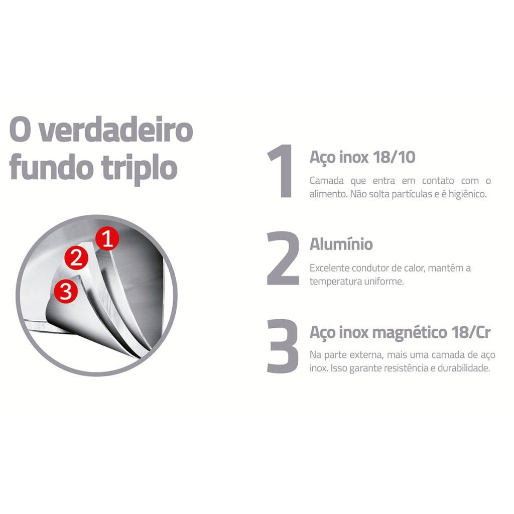 Jogo de Panelas Tramontina Allegra Inox e Indução 5pçs com Faqueiro Tramontina Búzios 24pç Aço Inox