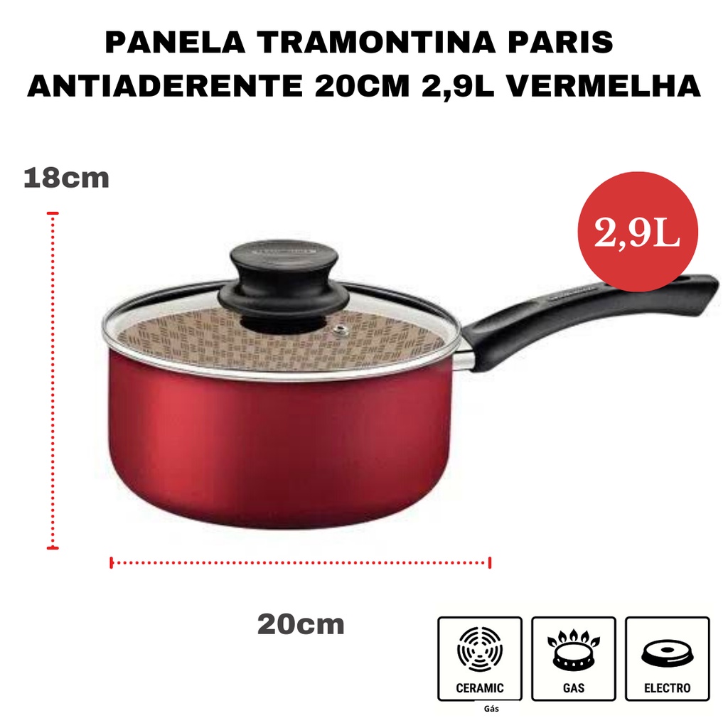 Jogo de Panelas Tramontina Antiaderente Kit 5 Peças Conjunto Paris Aluminio Vermelho c/ Panela de Pressão