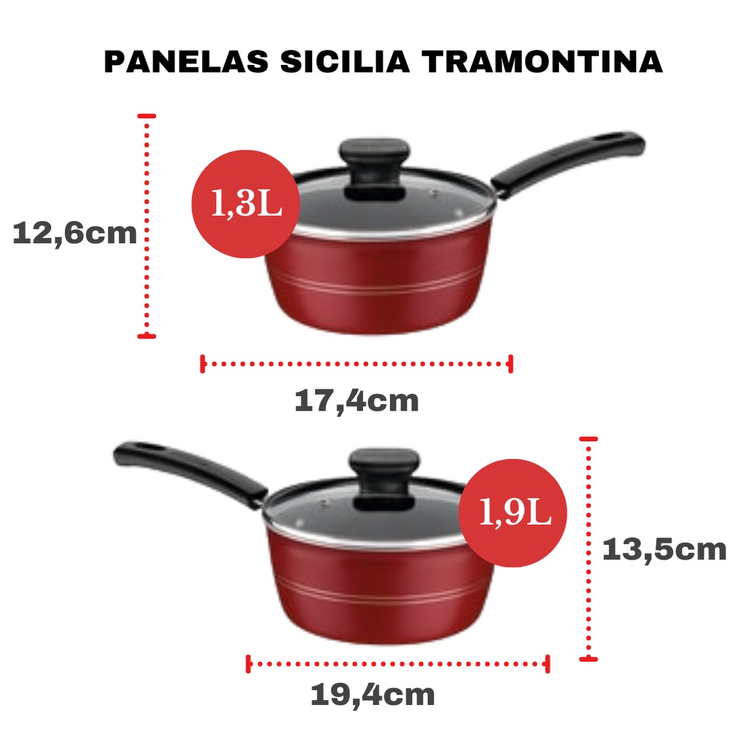 Jogo de Panelas Tramontina Antiaderente Starflon Excellent Sicilia Vermelho Kit 6 Peças C/ Panela de Pressão