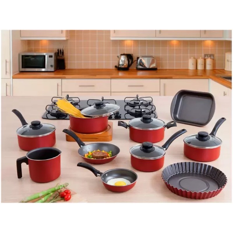 Jogo de Panelas Tramontina Antiaderente de Alumínio Vermelho 10 Peças Turim