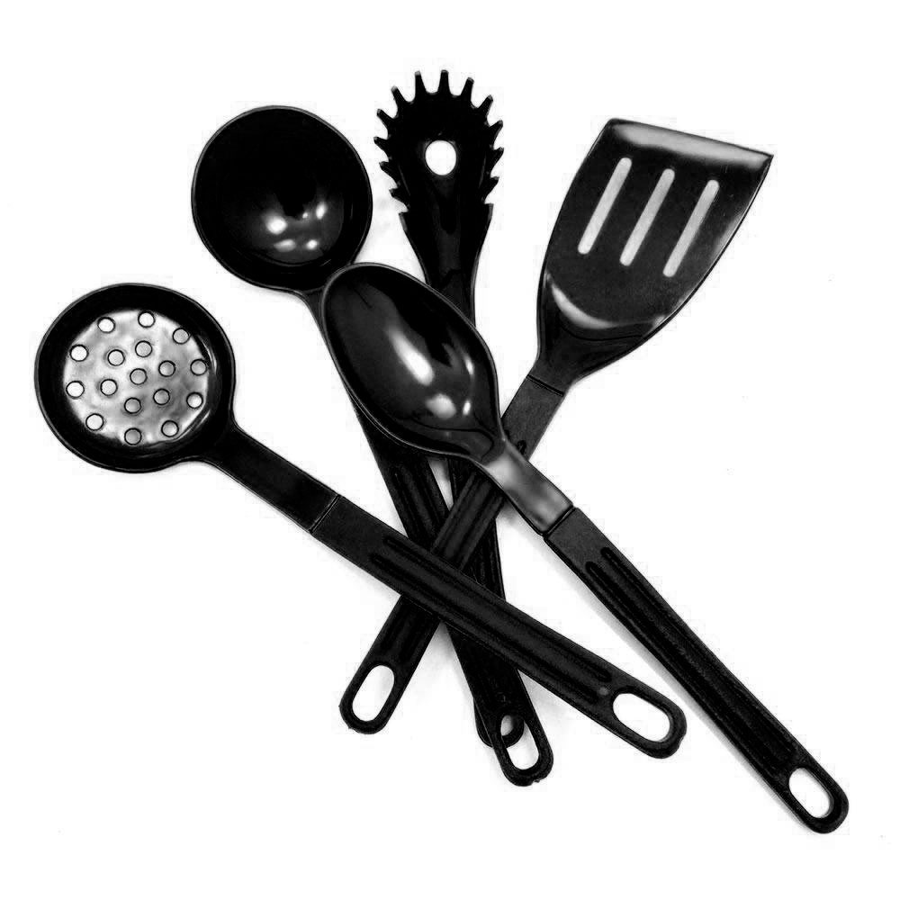 Jogo de Panelas Tramontina Caribe 5 peças Vermelho e Conjunto Utensílios em nylon 5 Ppçs Preto