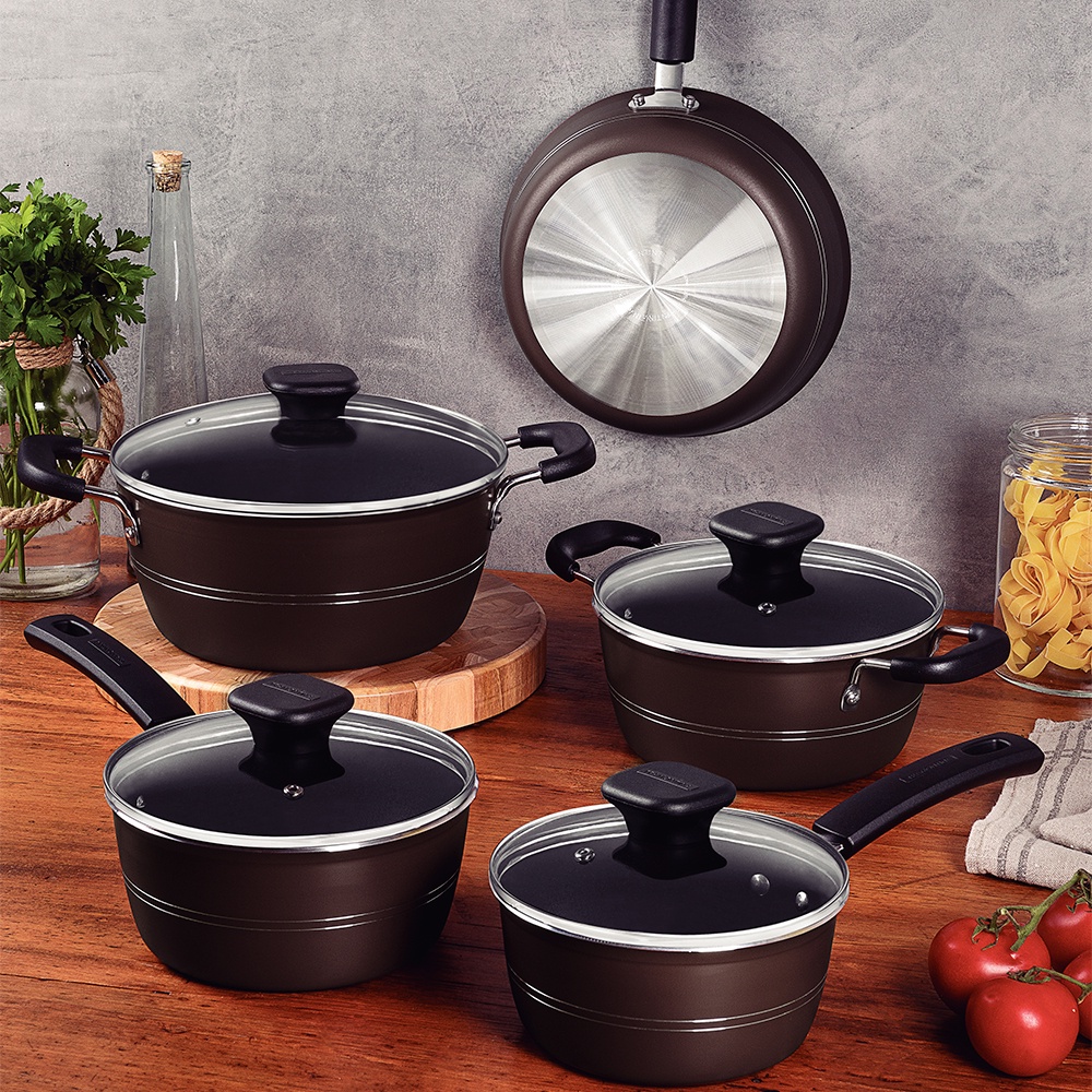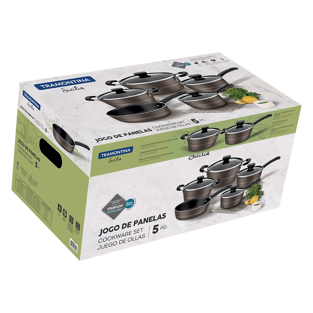 Jogo de Panelas Tramontina Sicília Alumínio Antiaderente 5 Peças + Colher