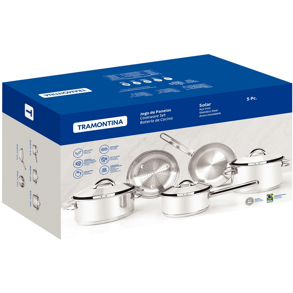 Jogo de Panelas Tramontina Solar 5 Peças Inox Fundo Triplo