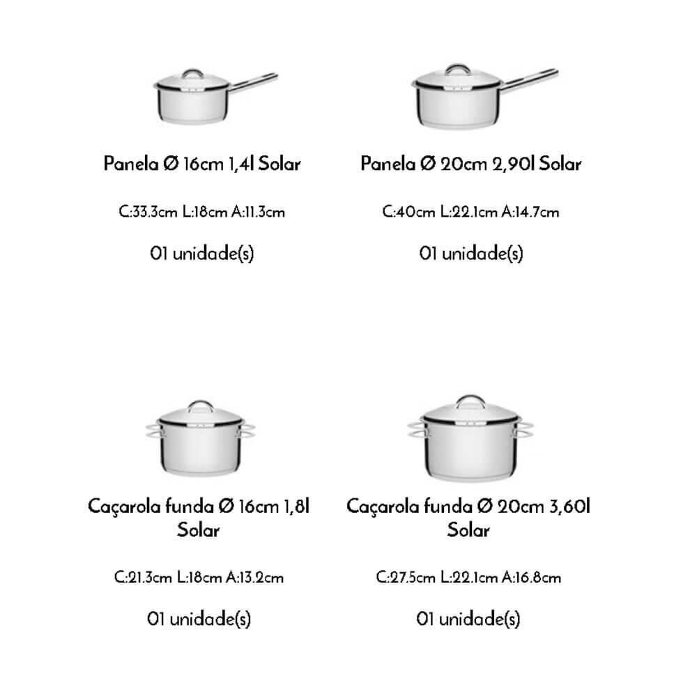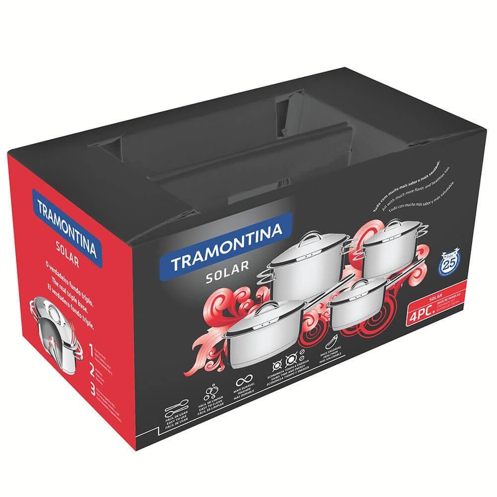 Jogo de Panelas Tramontina Solar em Aço Inox com Fundo Triplo 4 Peças 65510760
