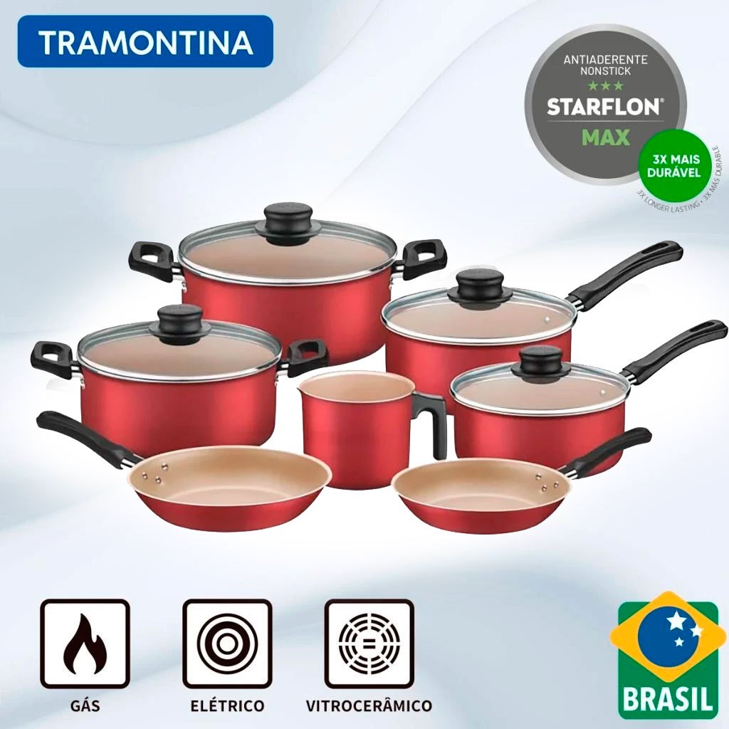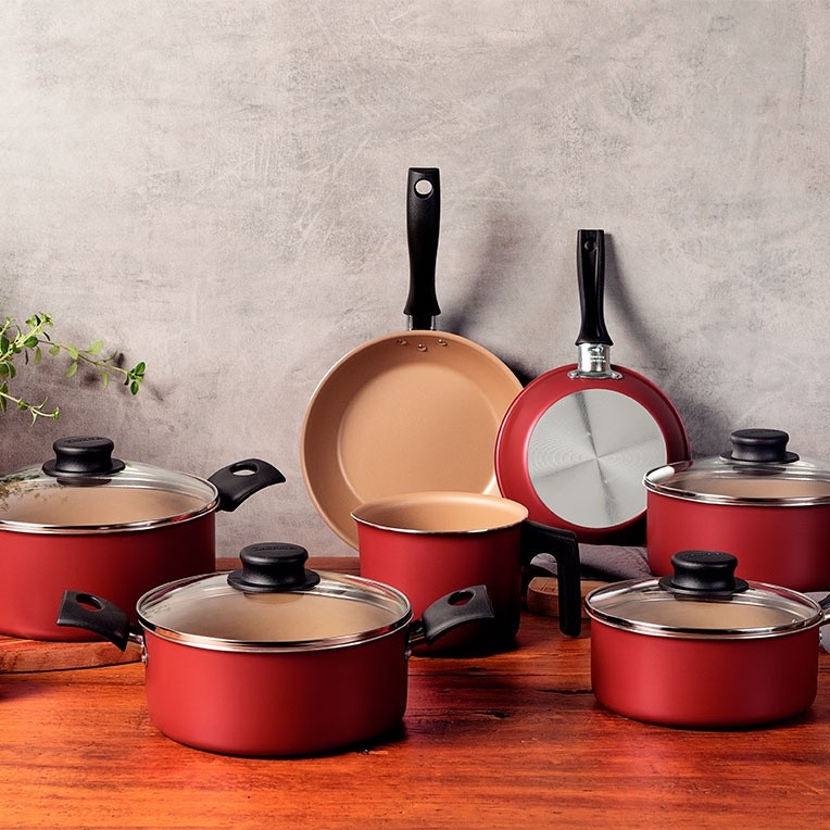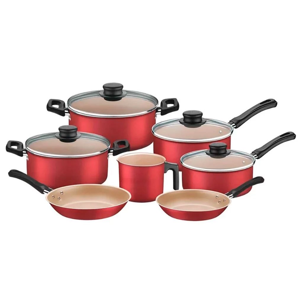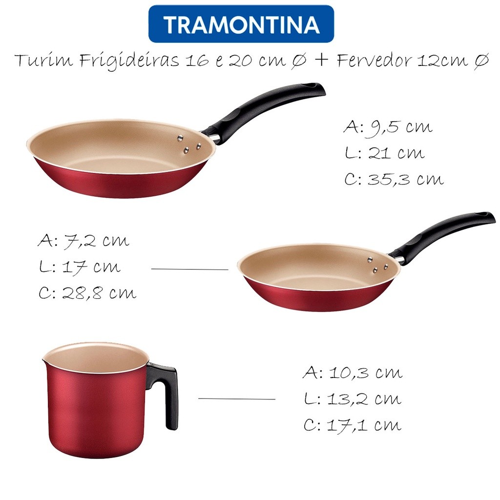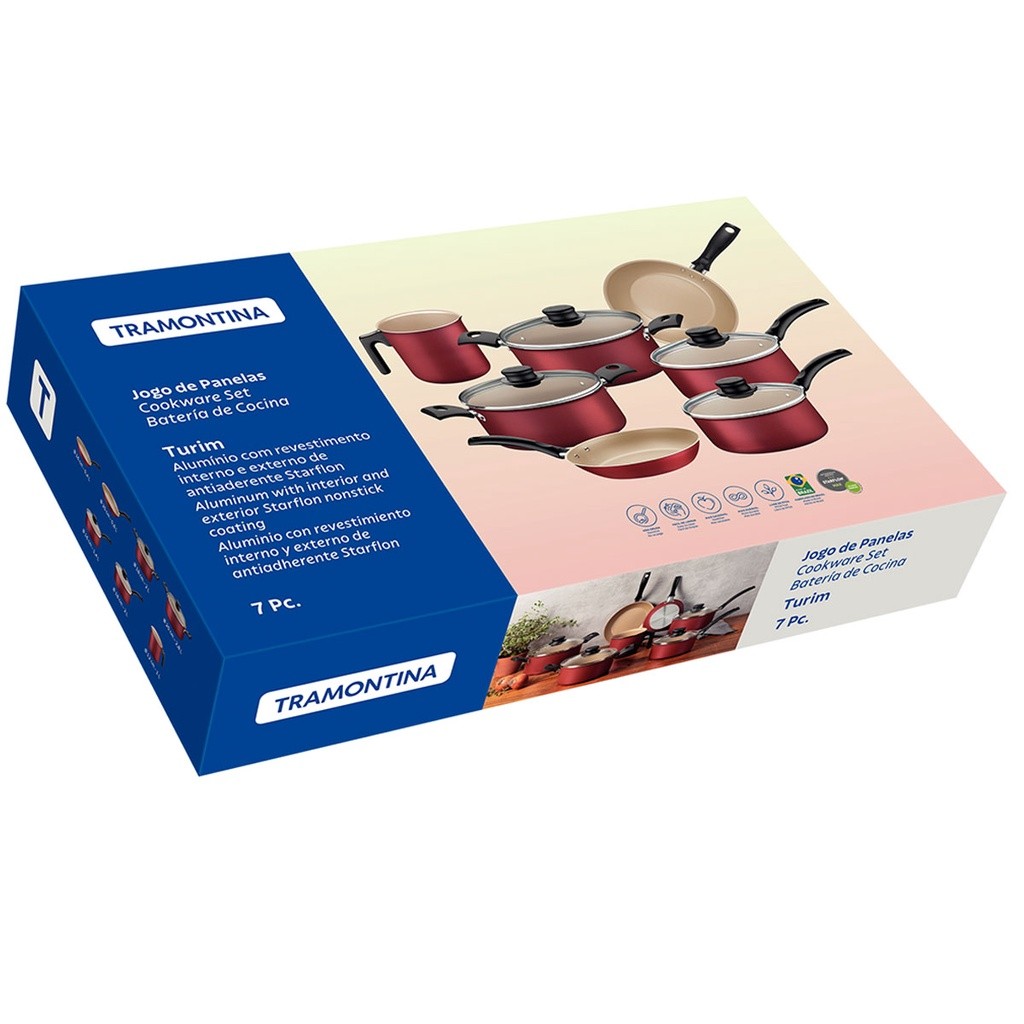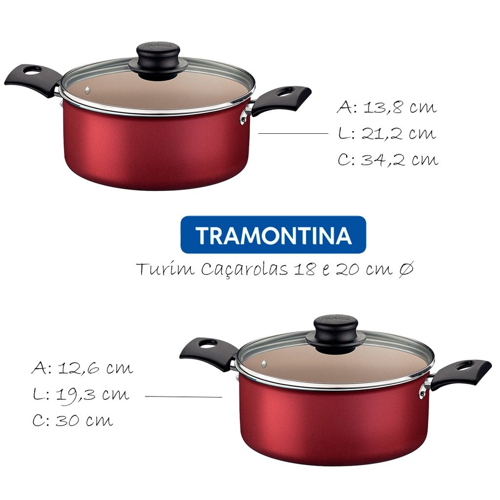 Jogo de Panelas Tramontina Turim em Alumínio Antiaderente Vermelho 7 Peças