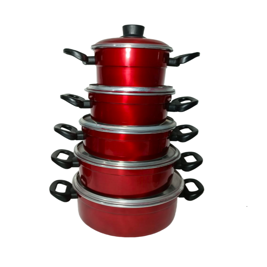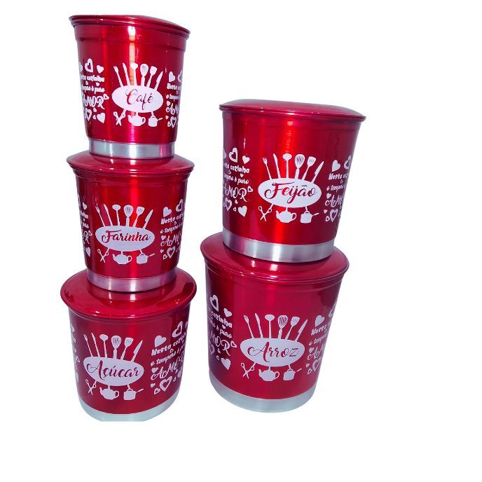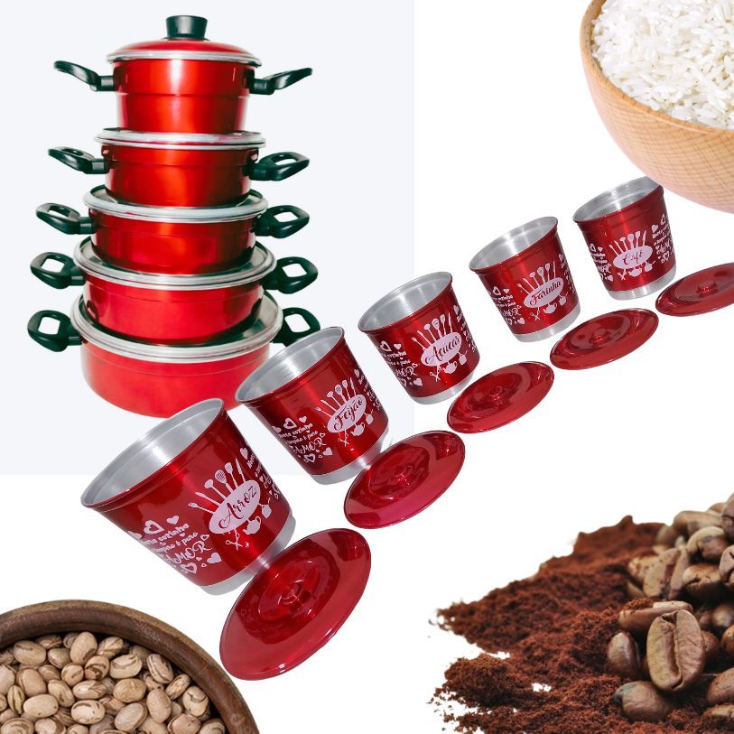 Jogo de Panelas Vermelha Verniz 5 Pçs + Kit Mantimentos 5 Pçs + Talheres - maçãSTORE