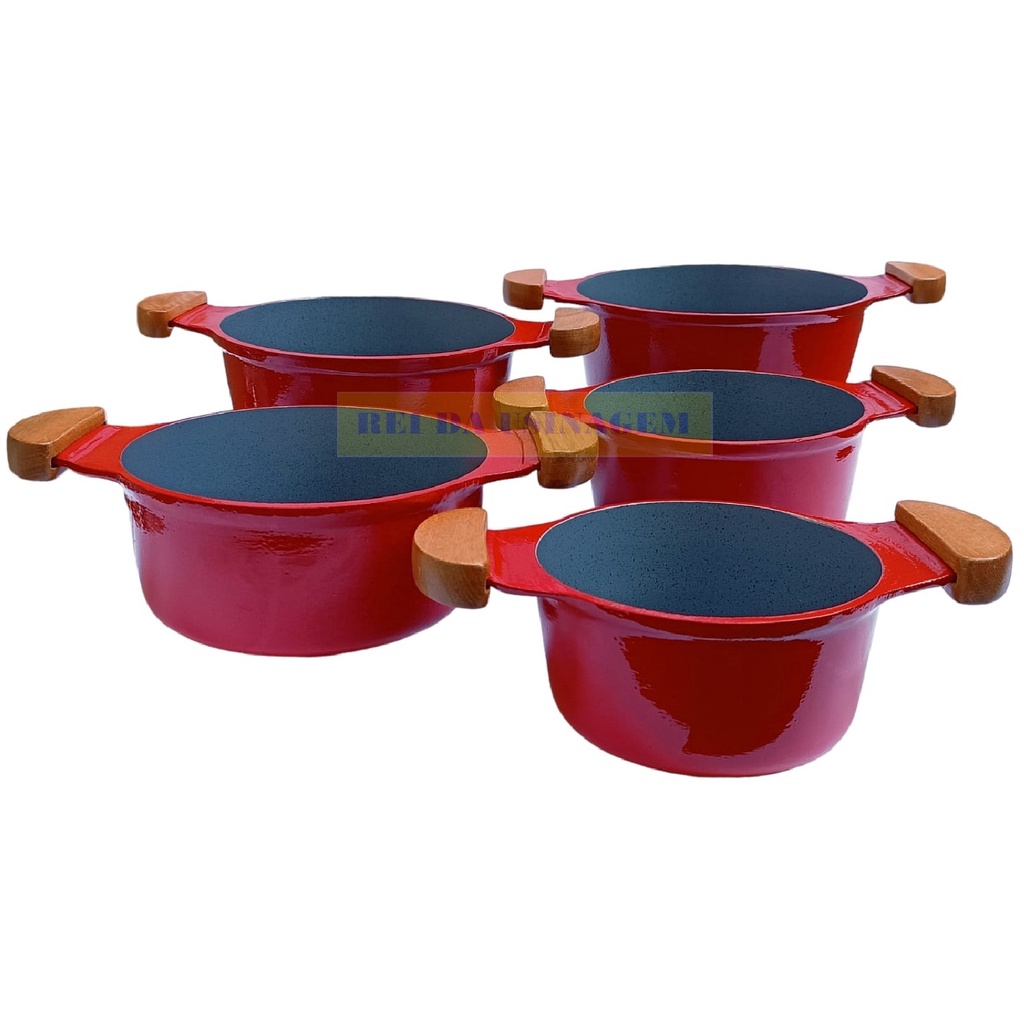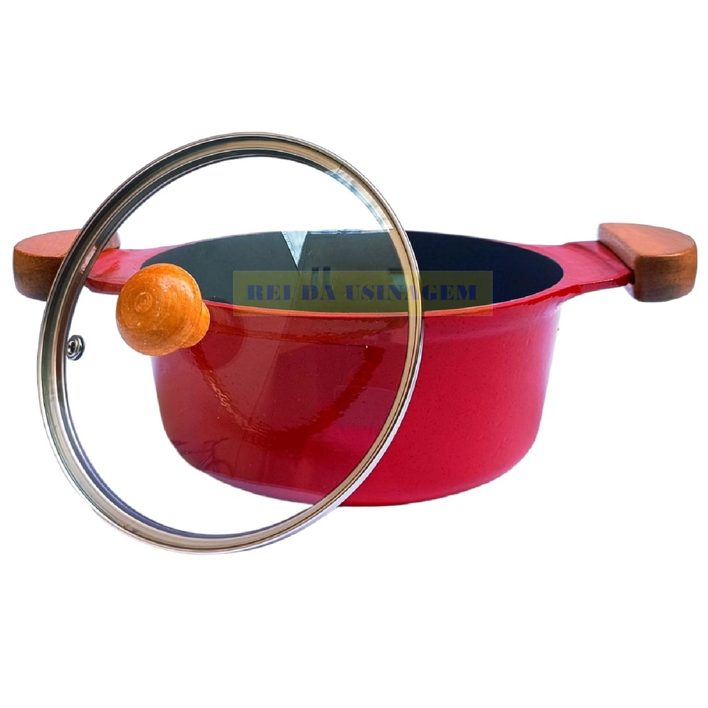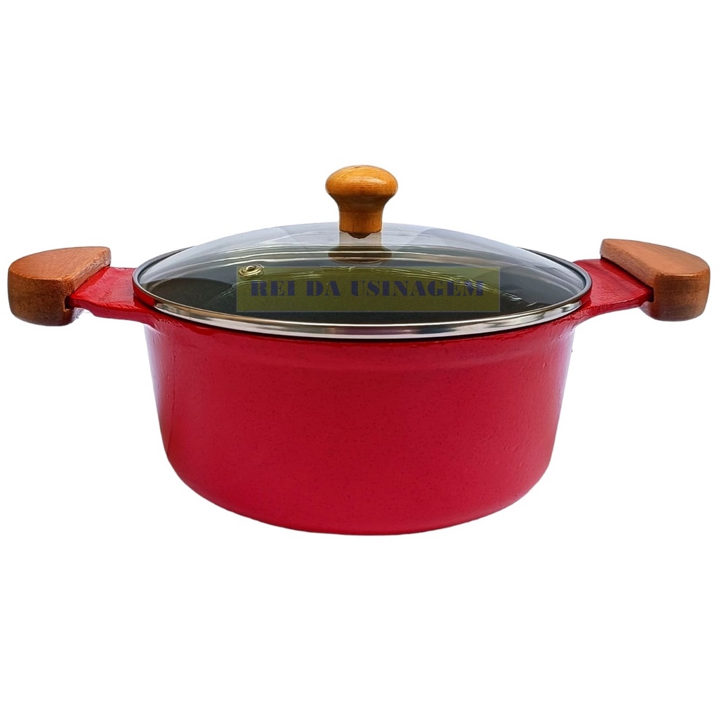 Jogo de Panelas Vermelho Antiaderente Cerâmico com Alça de Madeira e Alumínio Fundido Premium com Tampa de Vidro