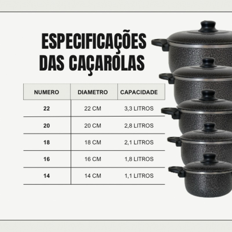 Jogo de Panelas com 5 peças coloridas em alumínio de excelente qualidade.