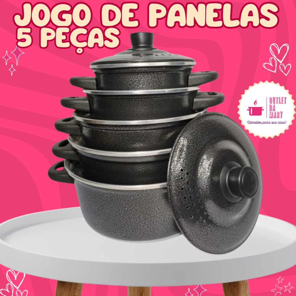 Jogo de Panelas de Alumínio 5 Peças Grafite Craqueado