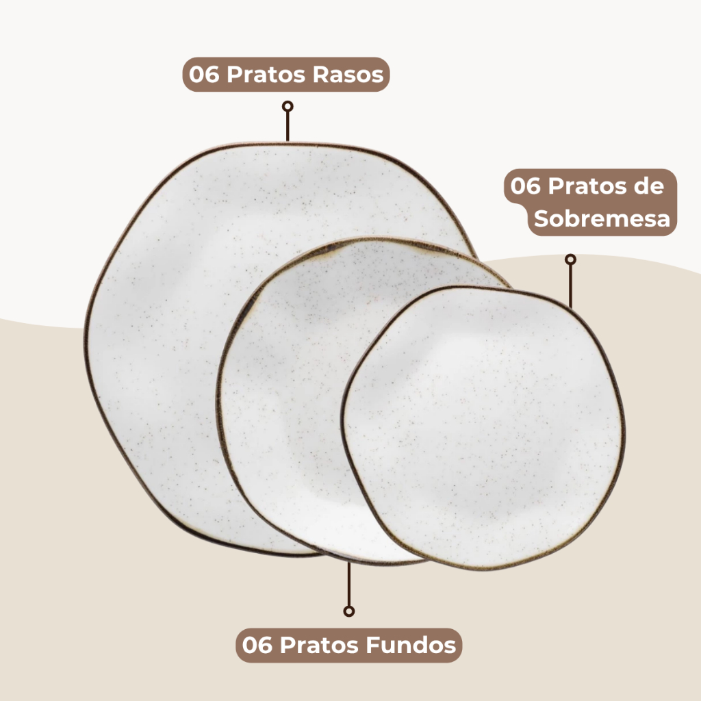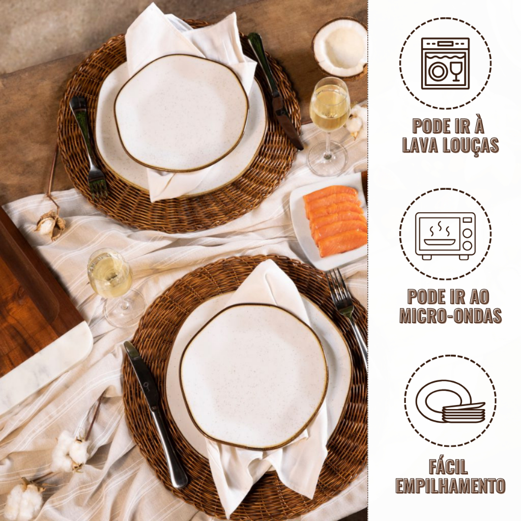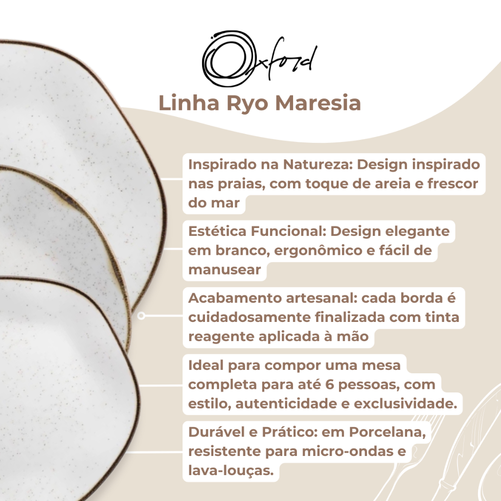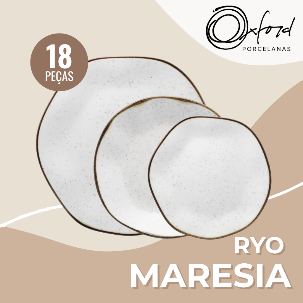 Jogo de Pratos Raso Fundo Sobremesa 18 Peças Ryo Maresia Oxford Porcelanas