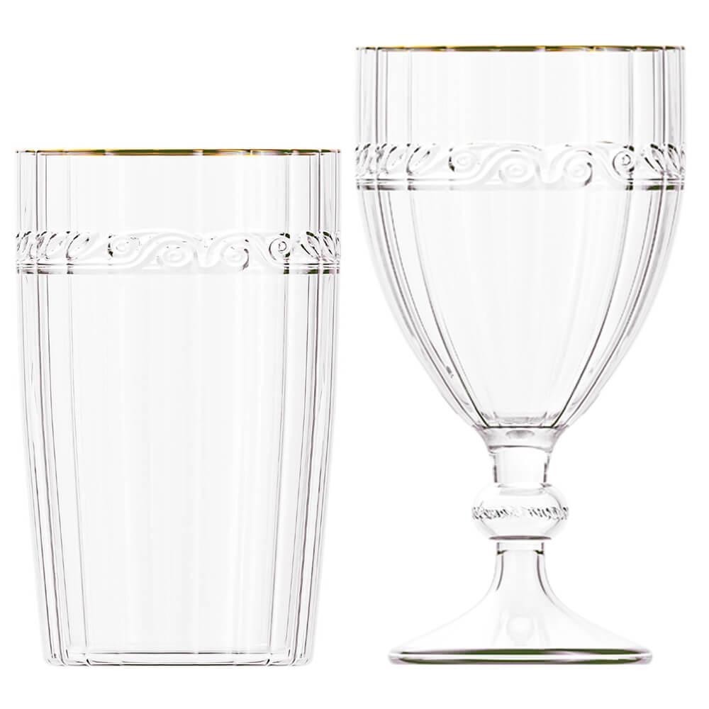 Jogo de Taças e Copos de Cristal Imperial Fio de Ouro 8 peças - Lyor