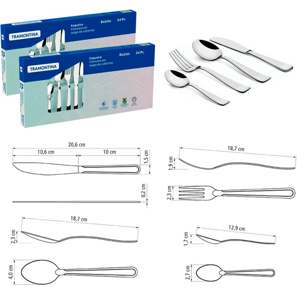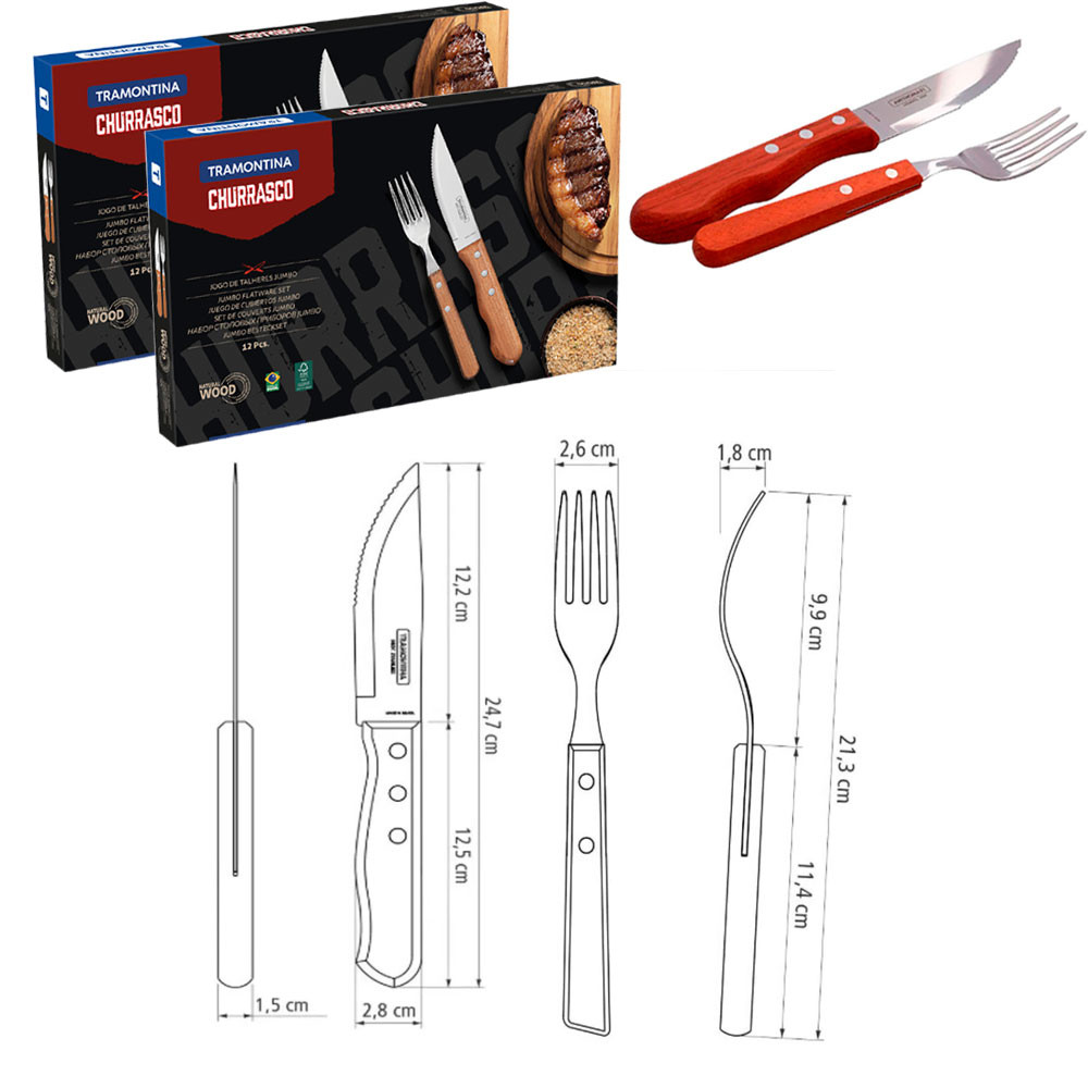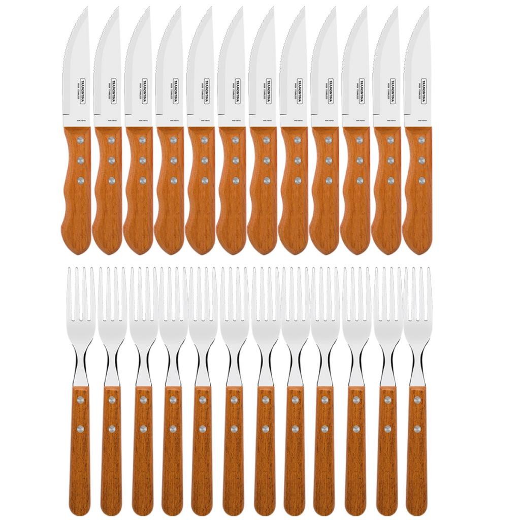 Jogo de Talheres Tramontina 72 peças Para Mesa e Churrasco Buzios e Jumbo em Aço Inox e Madeira