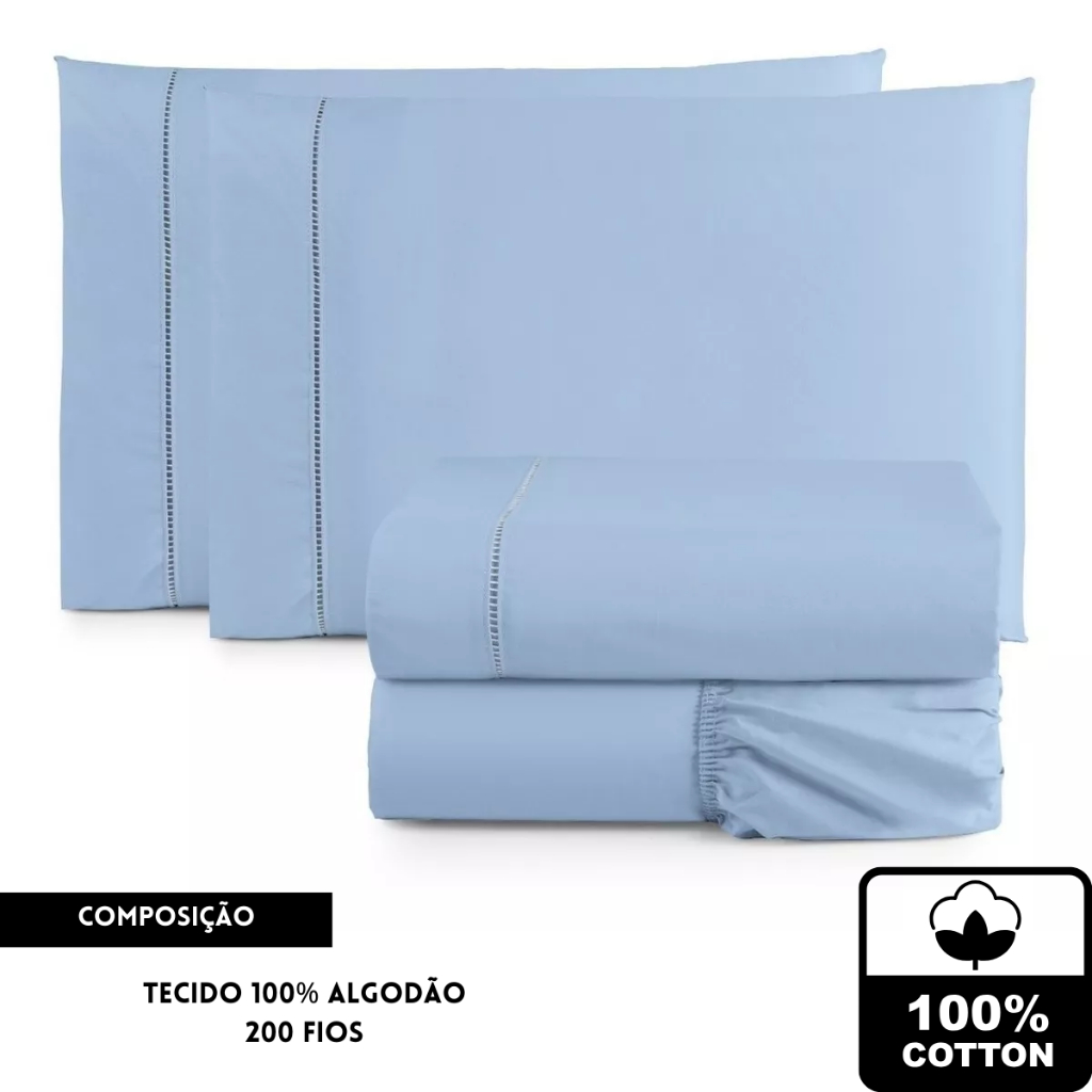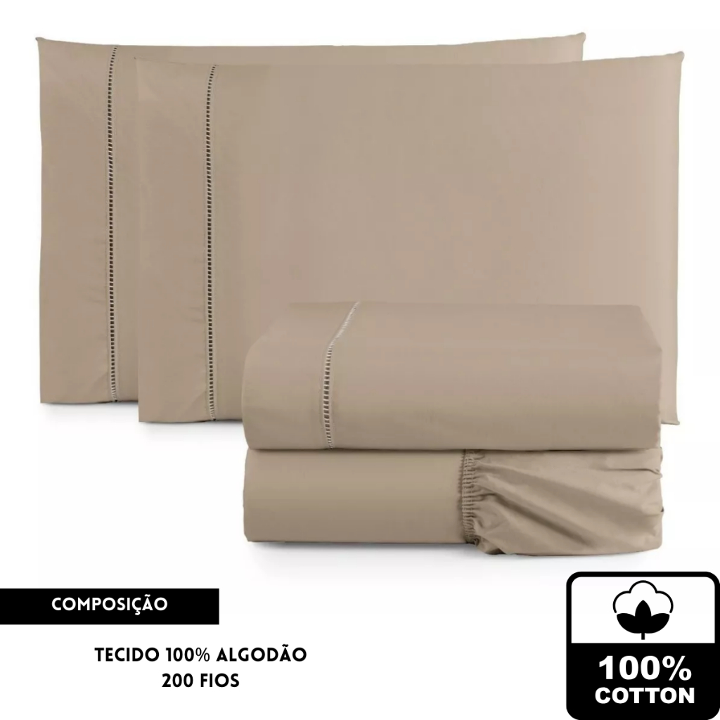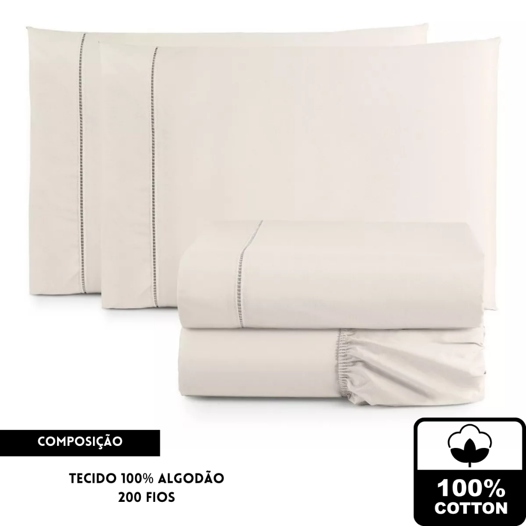 Jogo de lençol casal 3 Peças Padrão 200 fios 100% algodão lisos